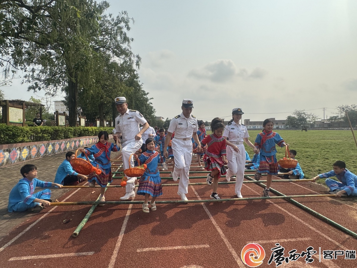 2024年,广西舰海军官兵与庆乐小学开展“民族团结进步”共建活动。图为官兵和孩子们一起跳竹竿舞。 庆乐小学 供图 舰校互动的细节里,处处可见双向滋养的温情。广西舰官兵和孩子们一起跳竹竿舞、体验民俗刺绣,在轻松相处中感受乡土温情;孩子们用书信、画作、手工传递心意,在朴素交流中温暖官兵坚守的日子。 这些珍藏在广西舰的书信,正是彼此照亮的真实写照。它是少年对军人的敬意与牵挂,是军人对少年的鼓励与期许;是国防教育最自然的延伸,也是民族团结最温情的体现。这种相互温暖、彼此成就的相处,正是新时代军民情谊的动人模样。 无声传承,承载强国使命 4月8日,庆乐小学的一场“登舰感悟分享”格外动人。今年年初,师生代表登上广西舰,近距离感受战舰威严,与官兵面对面交流,这段经历成为孩子们心中难忘的成长印记。 六年级学生黄丽琏在分享时语气坚定:“作为广西的孩子,能登上以家乡命名的军舰,我特别骄傲。这次登舰让我开阔了眼界,也真切感受到祖国的强大……”