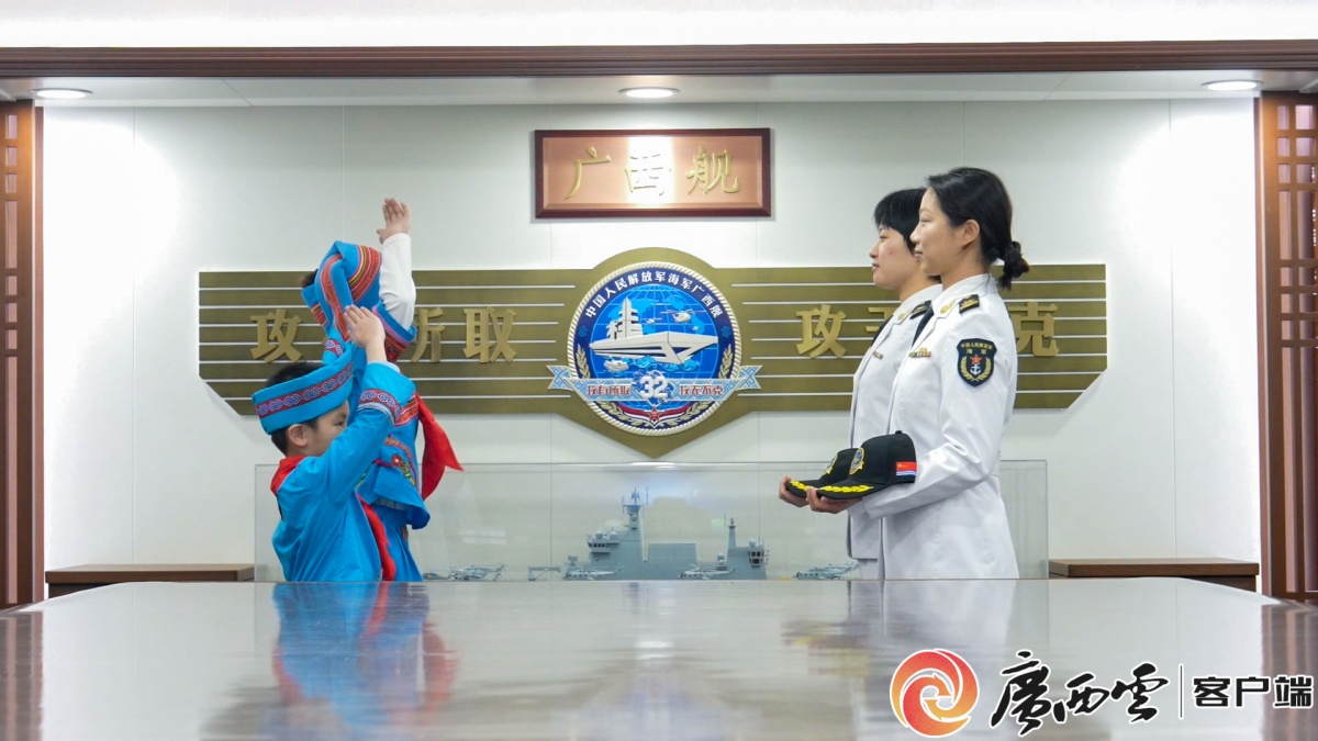中国人民解放军海军广西舰,荣誉墙上的“旗舰功臣”“旗舰尖兵”等照片,与一旁的战舰模型相映生辉,定格着钢铁战舰驰骋深蓝、守护海疆的荣光。 这面闪光熠熠的荣誉墙前,一封以壮锦花边装饰的书信静静陈列在玻璃展柜中。落款处“小学生 黄静雯”的字迹,稚嫩却透着坚定。 没有宏大叙事,没有华丽辞藻,这封来自广西一所乡村校园的普通书信,为何能跨越山海,与战舰荣耀一同被郑重珍藏? 小学生书信 与荣光同柜 “尊敬的军哥哥,你们好,感谢你们对祖国作出的贡献。因为你们要保卫祖国,一年到头没回几次家。这样无私奉献的你们,怎能让我不心存敬意?我想对你们说,你们辛苦了!长大后我也要做对国家有贡献的人,我会以你们为学习榜样……” 在今年一次随广西慰问团登上广西舰开展双拥慰问时,记者在舰艇荣誉墙前的玻璃展柜看到这封特殊来信。柔和灯光下,书信字迹清晰、边角平整,已被官兵悉心呵护多年。这是南宁市武鸣区太平镇庆乐小学学生黄静雯写下的心里话,经由学校和相关部门寄到战舰,孩童最朴素的真诚与敬意,跃然纸上。