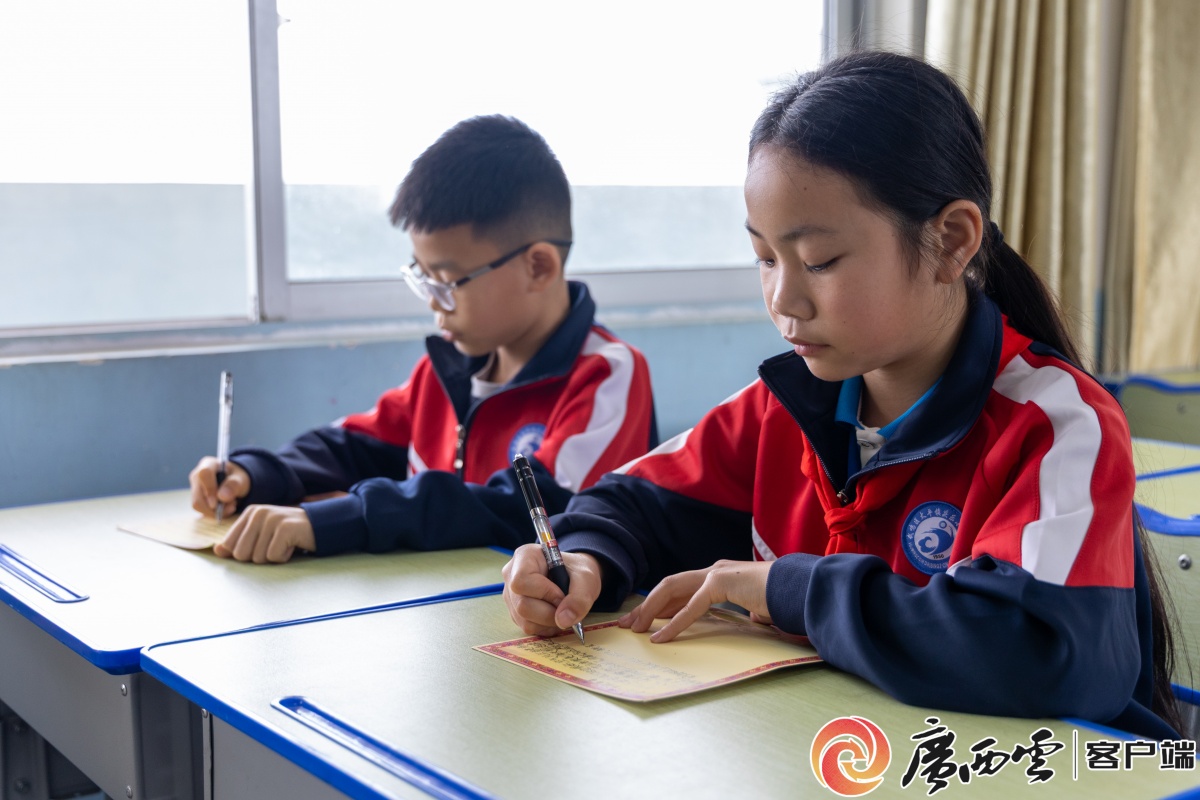 庆乐小学的学生写信给广西舰官兵。广西云-广西日报记者 凌鹏 摄 在校园里,孩子们提起广西舰,语气里满是自豪:“以我们广西命名的军舰在远方守护家国,我们觉得特别骄傲,也想把心里话说给海军哥哥姐姐听。” 庆乐小学校长黄彦安告诉记者:“在广西各级双拥、统战工作部门等多方推动下,2022年12月舰校达成共建。”自此,一封封书信从乡村校园飞往深蓝大海,成为连接战舰与少年、军营与乡土的温暖纽带。 舰校共建的岁月里,接收书信的广西舰官兵坦言,看到书信的那一刻,不禁被深深打动:“我们常年驻守海疆,早已习惯了与风浪为伴,收到这样一封封学生的来信,心里暖暖的。”在他们看来,这封信的分量,丝毫不亚于任何一枚荣耀勋章。“荣誉不只是战功赫赫,还是童心所向、军民同心。这封信里,有孩子们的家国情怀,更有我们坚守使命的意义。” 不止关爱,更是彼此“照亮” 广西舰珍藏这些书信的背后,是一场跨越山海的双向奔赴。 2023年1月,广西舰官兵第一次走进庆乐小学。此行本是为孩子们开展国防教育,海军广西舰战士覃冰锋却收获了别样触动:“与其说是我们给孩子们讲海防、讲使命,不如说是孩子们的纯真,给我们上了一课。” 活动现场,一名三年级同学拉着他的衣角,满眼好奇又骄傲地追问:“叔叔,这艘舰真的叫广西舰吗?它有多大?能不能开到我们武鸣这里?”孩子清澈的眼神,让他深刻意识到,此行不只是知识的传递,更是在少年心里种下一颗向往军营、心系家国的种子。 孩子们的向往与信任,也成为官兵坚守战位的精神支撑。覃冰锋至今珍藏着孩子们绘制的“我心目中的广西舰”,一张写着“我要努力读书,长大了当海军,保卫祖国的大海”的心愿卡,被他视作最珍贵的礼物。 2024年参加共建活动时,海军广西舰战士王赫被孩子们的真诚打动。大家送上亲手画的战舰、制作的绣球,诉说自己的从军心愿,让他真切感受到,战舰连着家乡,军人牵着少年。 官兵们的到来,点亮了孩子们的成长之路。黄彦安校长说,舰校共建以来,最明显的变化就是孩子们心里有了努力方向。大家开始主动了解海军知识、关注国防发展,许多同学把报效祖国当作自己的成长目标,学习更有劲头,做人更有志向。