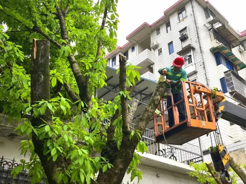 园林工人作业中 截至目前,累计修剪乔木9416株,涵盖小叶榕、黄葛榕、紫薇、樟树、老人葵、羊蹄甲等多个品种,修剪范围覆盖滨江路、中山路、上海路、机场路、辅星路等30余条城市主次干道及漓江沿岸;修剪灌木31236株,包括三角梅、象牙红等,重点整治机场路、桂磨路等路段;绿篱地被修剪面积达920343.1平方米,以黄素梅、鸭脚木等为主,让道路绿化层次更清晰、造型更规整。 在辅星路,工作人员对路段内的黄葛榕实施了重截修剪。记者了解到,该路段的黄葛榕因立地条件较差,紧邻周边民房,长期生长出现偏冠、倾斜等情况,不仅影响居民采光,树木过高还易在大风、降雨天气发生倒伏,对过往行人和车辆造成安全隐患。