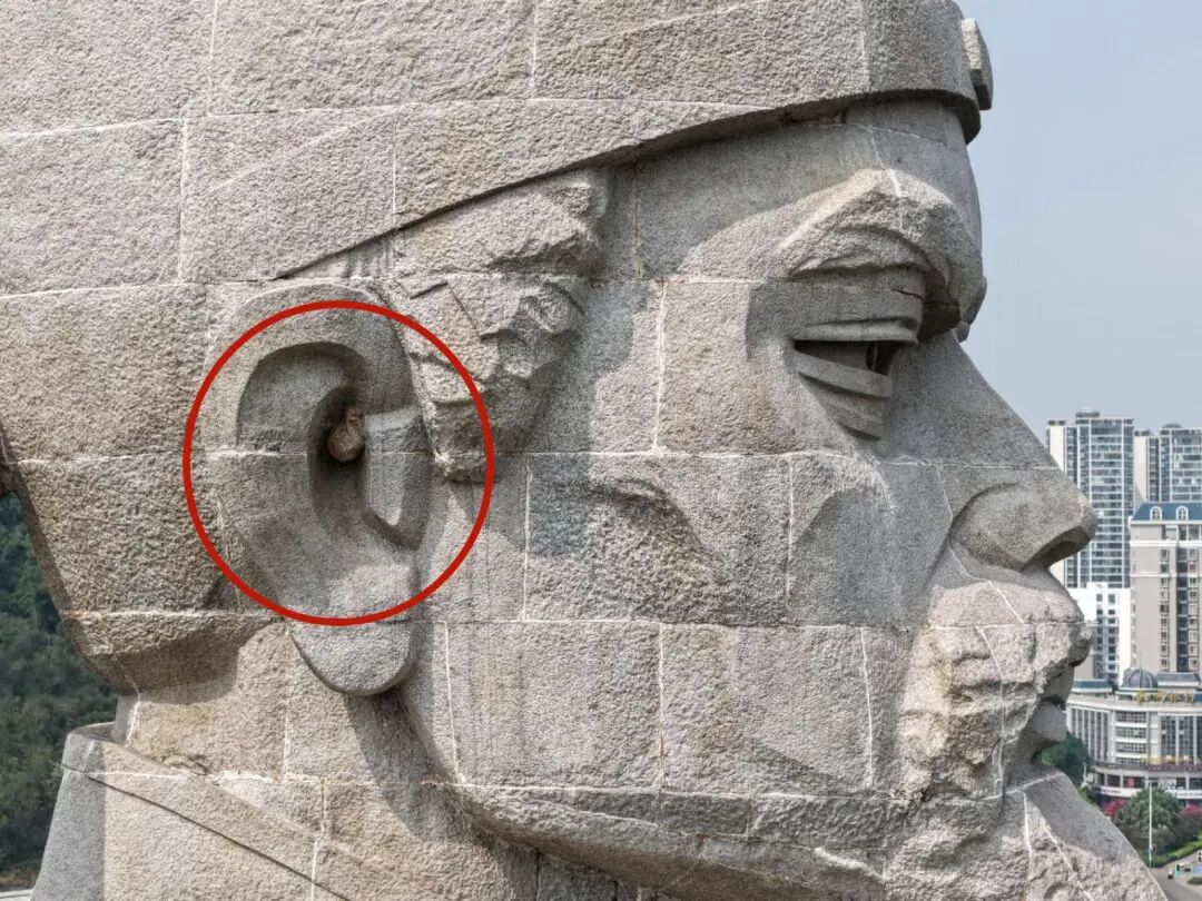 雕像右耳里的马蜂窝。