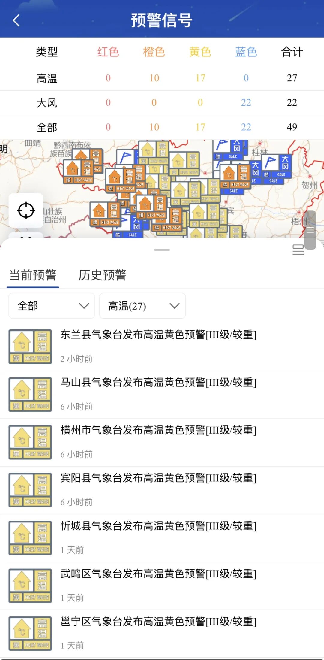 森林火险气象等级预报:10-15日,桂西大部地区森林火险气象等级4级,高火险;其它地区3级,较高火险。16-17日,桂东大部地区2级,较低火险;其它地区3级,较高火险。