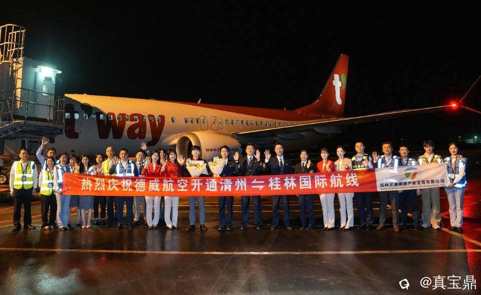 4月11日22点,由韩国德威航空执飞的TW9613航班从韩国清州机场顺利起飞,于4月12日凌晨1点25分平稳降落桂林两江国际机场,标志着桂林—韩国清州直达航线首航成功。