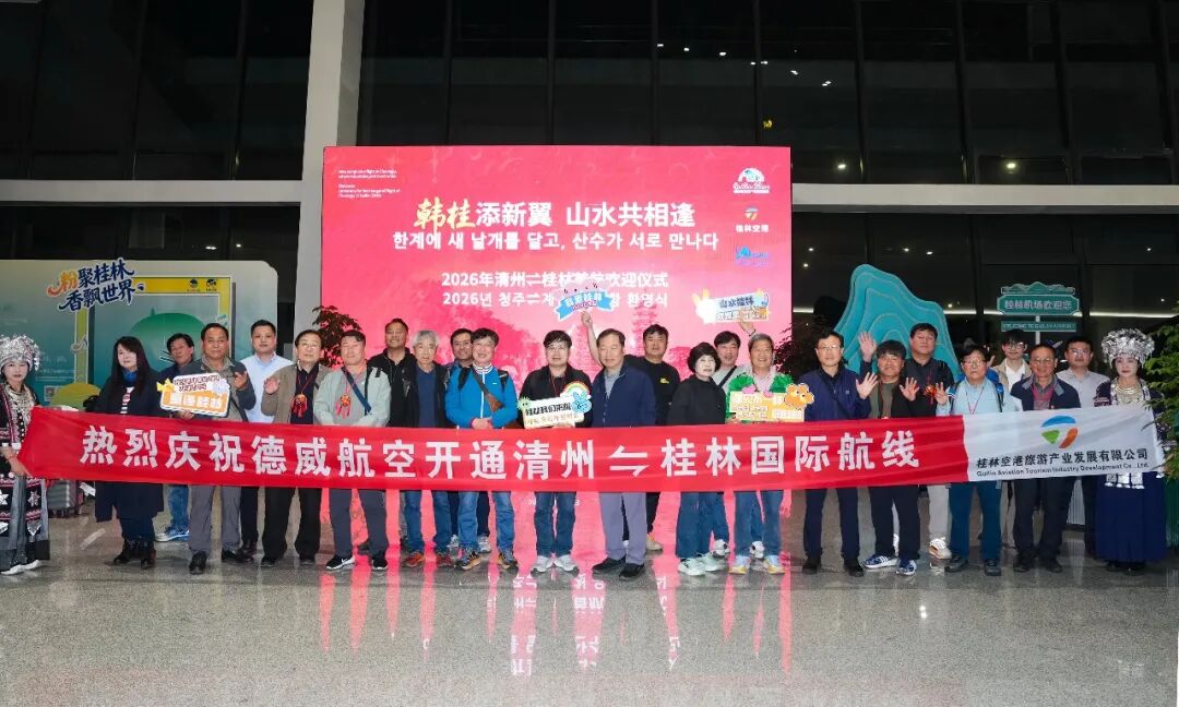 清州至桂林航线的开通,让桂林与清州之间的空中往来将更加便捷高效,不仅为两地旅客提供更加丰富的出行选择,也将进一步促进文化交流、旅游互动和经贸合作,让跨境商务与休闲旅行更加轻松从容,进一步拓宽韩国游客入境广西桂林空中通道。同时,也为韩国游客来访桂林及中国民众赴韩旅游提供稳定的运力支持。