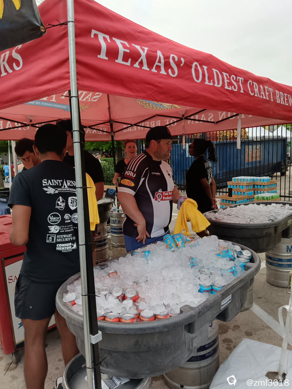 发放啤酒的摊子。还有发放矿泉水,墨镜、毛巾,环保袋的摊子。照片还未传上来。