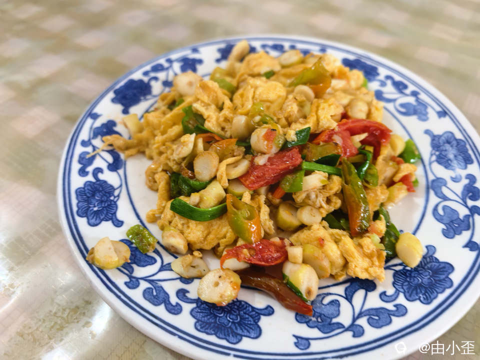 笋子爆炒鸡蛋,这个季节吃笋子真是太新鲜了,再加点鲜辣椒,清淡中不失风味。😋