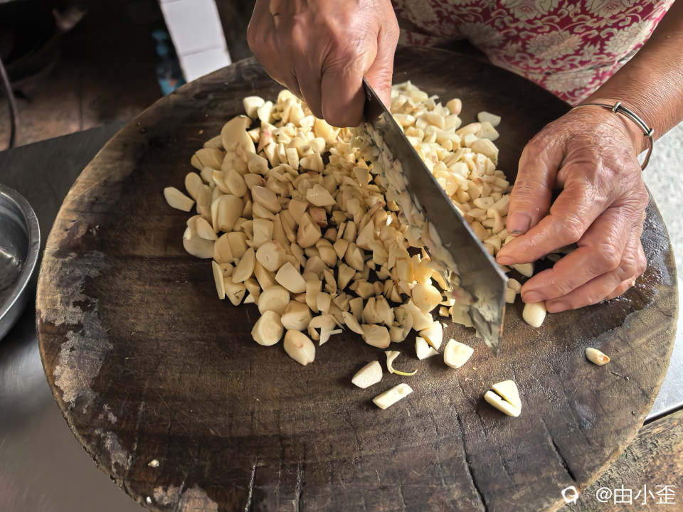 其中一位少妇在切蒜米,留着忙的时候做备份。😋