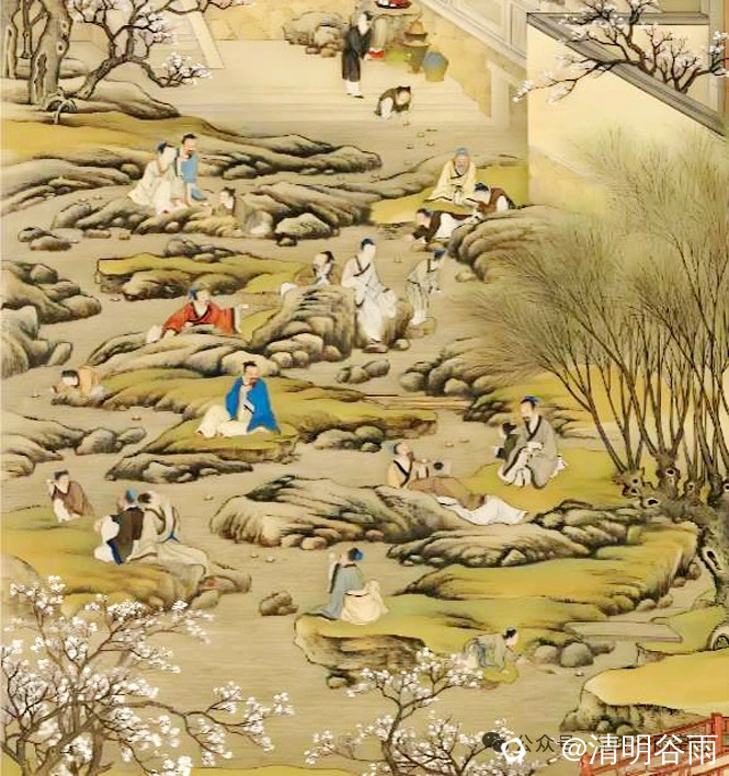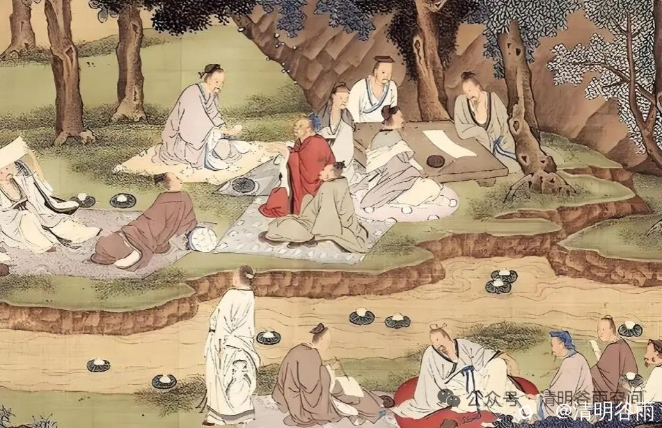 诗以"转眼"二字将时空拉回到东晋永和九年(353年)的兰亭盛会:王羲之与谢安等名士在曲水流觞间赋诗,留下"流觞曲水"的佳话,成就《兰亭集序》这一文学与书法双绝的经典。诗人描述了兴安文人山水雅集“追随拟赋踏青句",将场景延伸至岭南春日郊游,最后笔锋一转,由雅兴盎然的春游之乐转向别情依依的离愁,形成鲜明的时空对比。