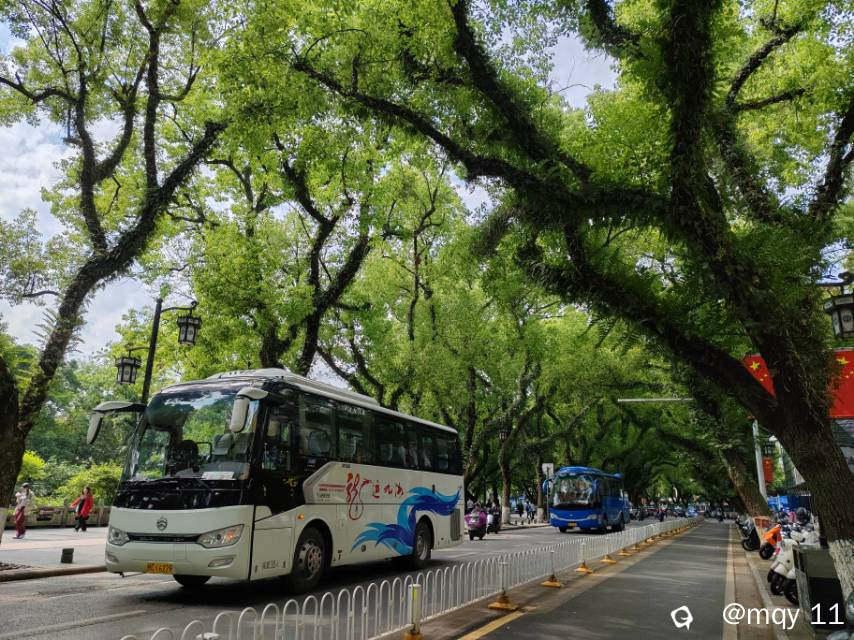 当桂林三月三的热闹才刚刚退去,绿意成林的滨江路,再次迎来一车又一车的旅游团。