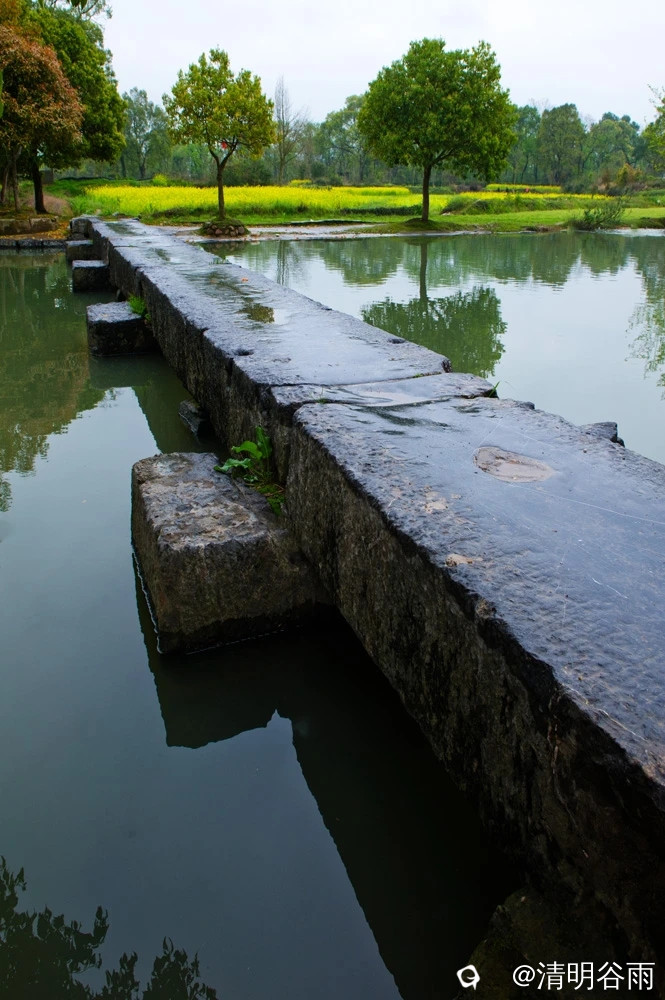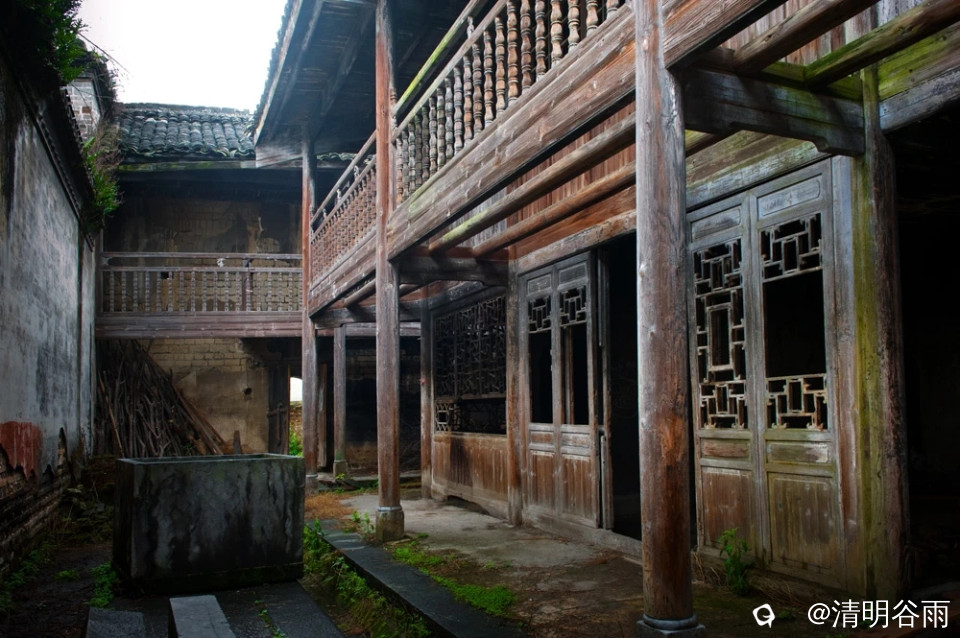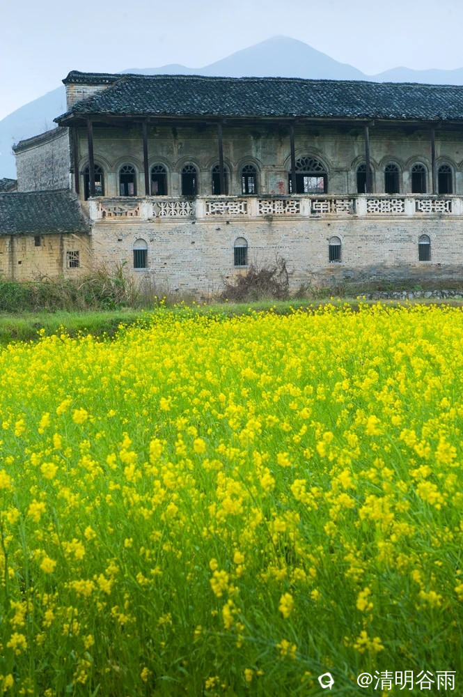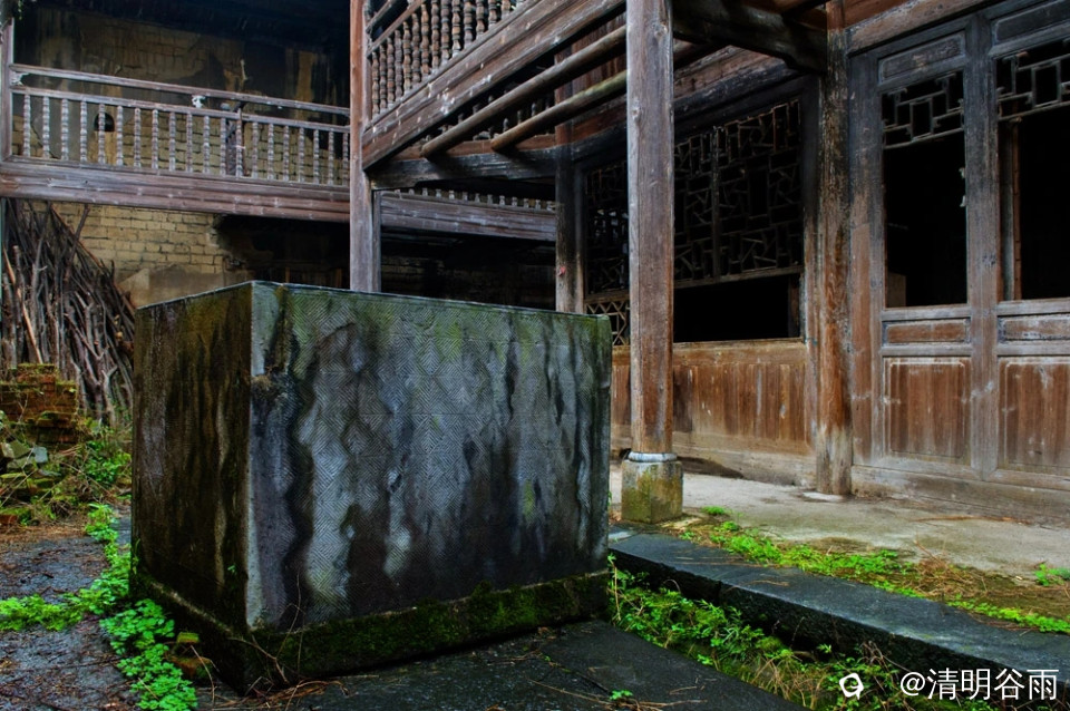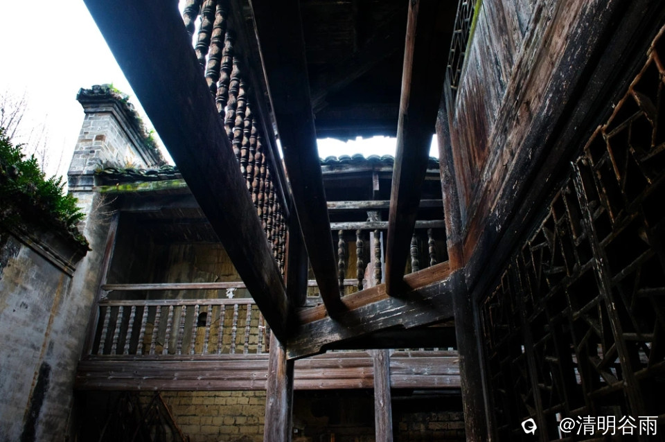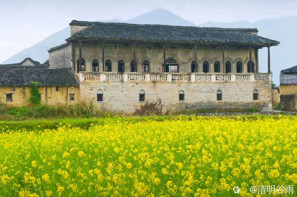 春天走进堡里村,那由七块巨大条石架成的古石板桥依旧平卧在河面上,过桥是古村,村中老屋有青砖房,有土砖房,贫富分明。沿着卵石街巷左转是蒋家大院,面积1500多平方。大院建筑为典型的桂北青砖黛瓦马头墙民居,院中有青石板铺成的过道,通过两道青砖拱门,是一座建于民初的两层楼房,这是一栋具有较高水准的民国时代建筑。楼房外部造型为西式风格,青砖外墙白灰抹面,内部则为木结构楼阁,楼阁前面和左右两边有三个中式青石天井。左右天井后边各有楼梯通二层,楼上二层为厅房,没有间隔,开有对称排列的十二个拱形窗口,宽敞明亮。厅房中间一道拱形大门通往窗口外长长的廊道,在廊道上凭栏眺望小河、田野、远山,有无尽的春光。