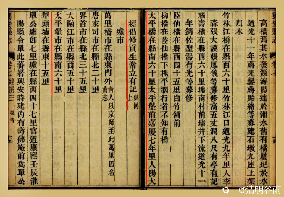 太平堡有路有桥,交通便利,商贩往来,居民聚居,由军堡逐渐成村,再由乡村而成圩市,县志记:“太平堡市在县南六十里”。