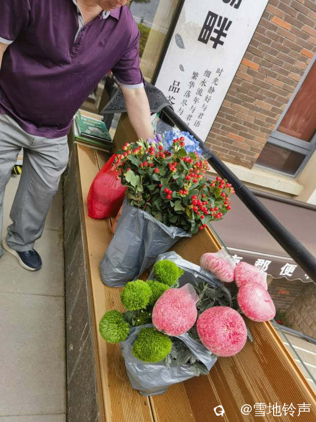 我们请酒店前台的两位小姑娘,帮我们把这些花插在矿泉水瓶子里面,用塑料袋包裹起来,放在车的后座,两天后,花花回来了!