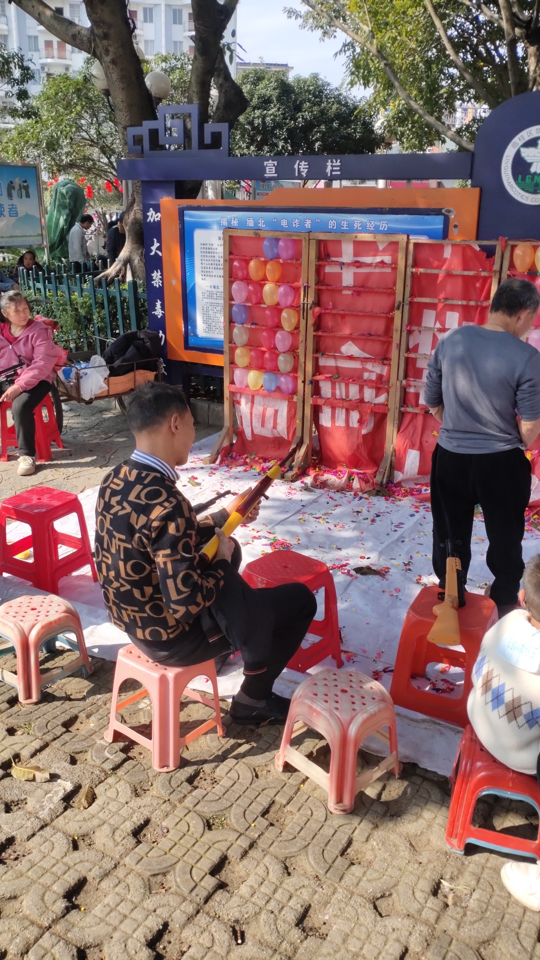 打气球的就是快乐的大本营,直到现在很多人,都还在坚持着,过年玩上一把,打气球,大年初三的下午,在临桂的金山广场上,大人小孩都围观在打气球的临时摊点上,有的在瞄准,有的再来一盘,而此时的我,把目光投向了,坐在一旁拿着枪瞄准射击的高手,扣动板机,瞄准,射击,一扣一爆,一扣一爆,弹无虚发。