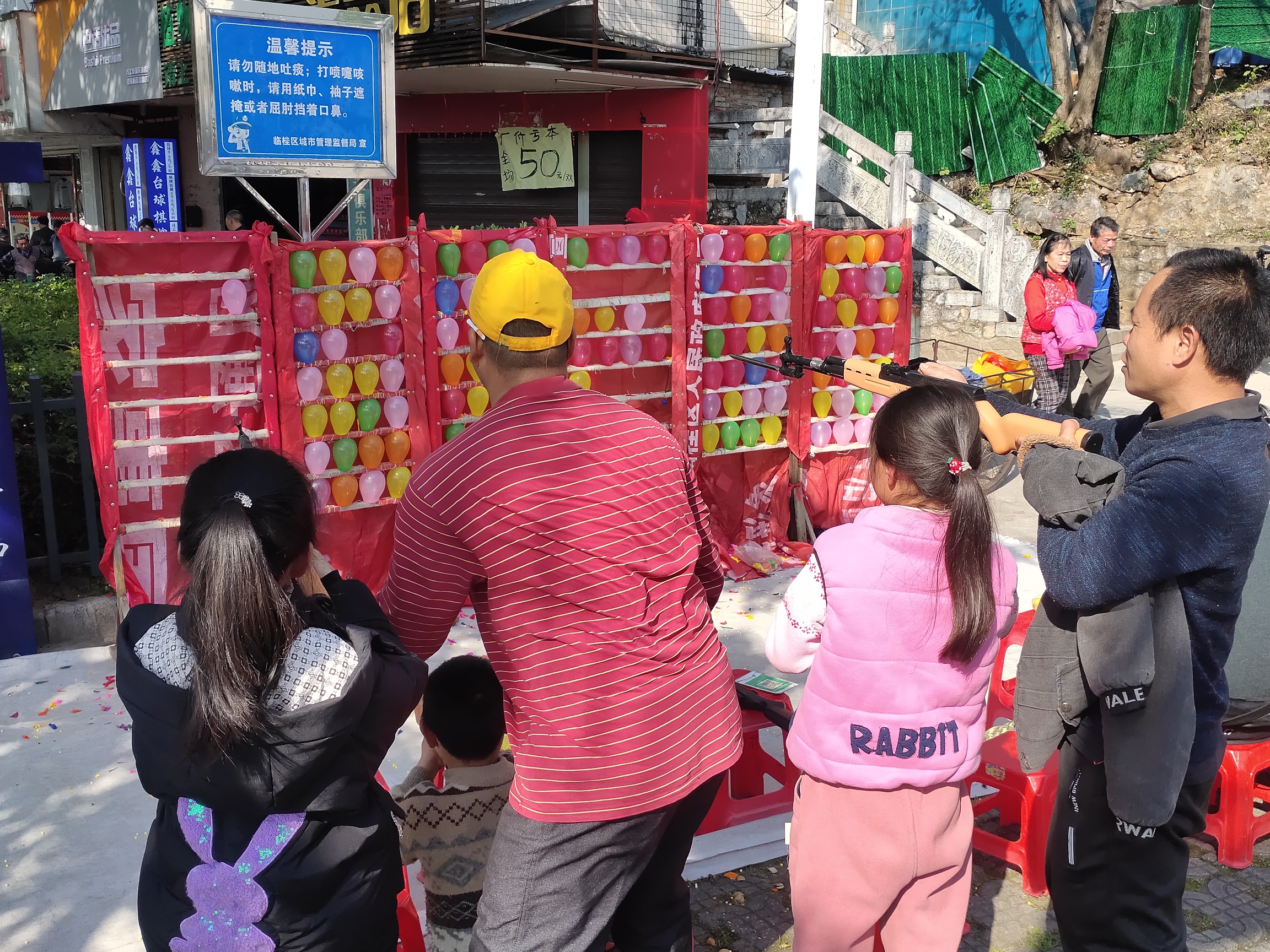 新春大过年,在大年初三,临桂金山广场的气球摊,跃跃欲试的手,还是抵不过诱惑,打气球。