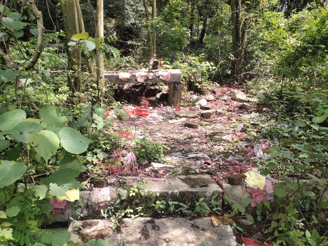 整齐堆砌的青石围墙,依然围绕着庙宇,只是青石之上的建筑,已经没有了,仅仅剩下几个碑刻,以及供奉之余食在摆台。