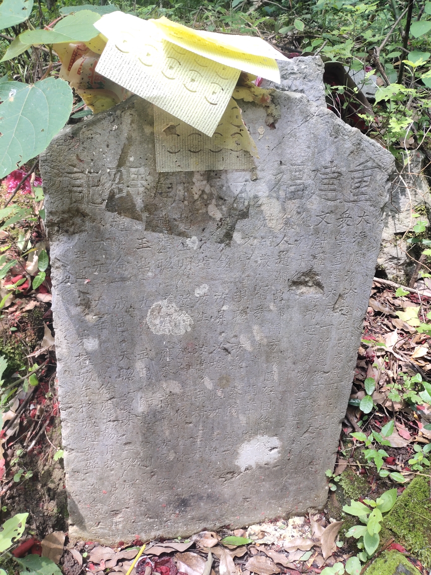 第二块碑刻为,新碑刻,“众建宝塔碑刻”,于光绪三十二年施工,来年竣工,建宝塔两座,以宝塔文笔两拱为相照,保村民子孙幸福,宝塔建设于众峰罗列的山谷。
