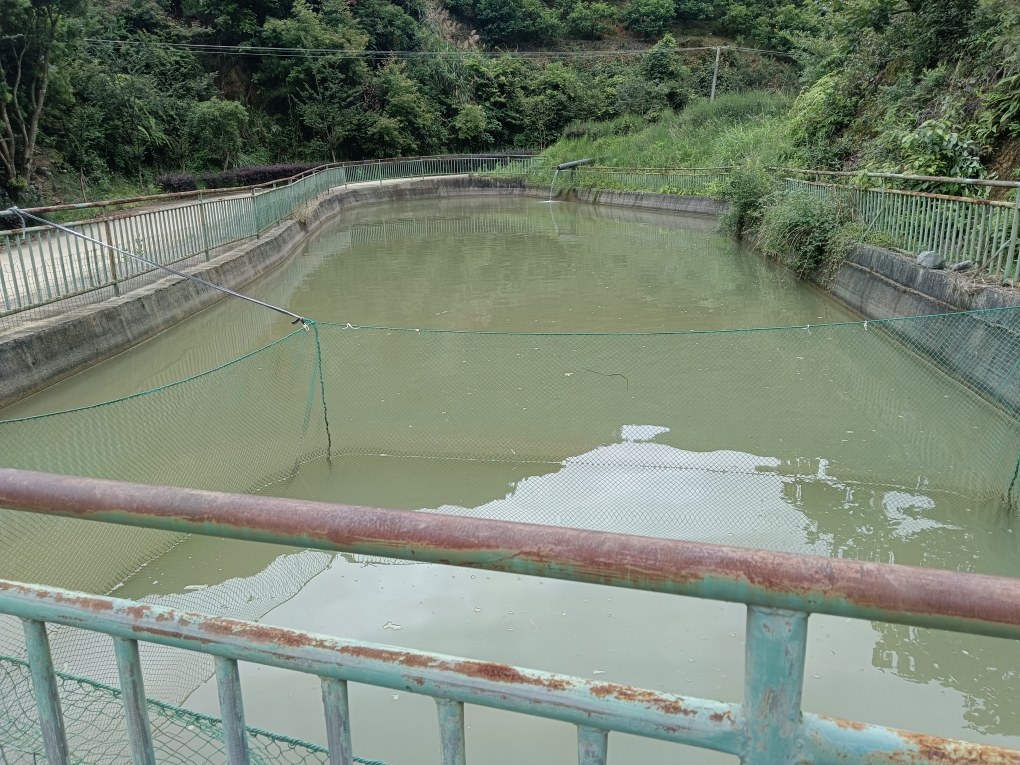 设立在大楼前方的水池钓区,因无人换水,池水有些泛混。
