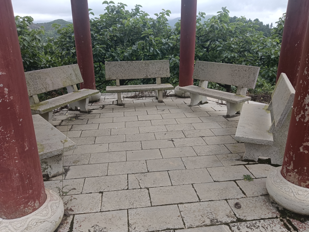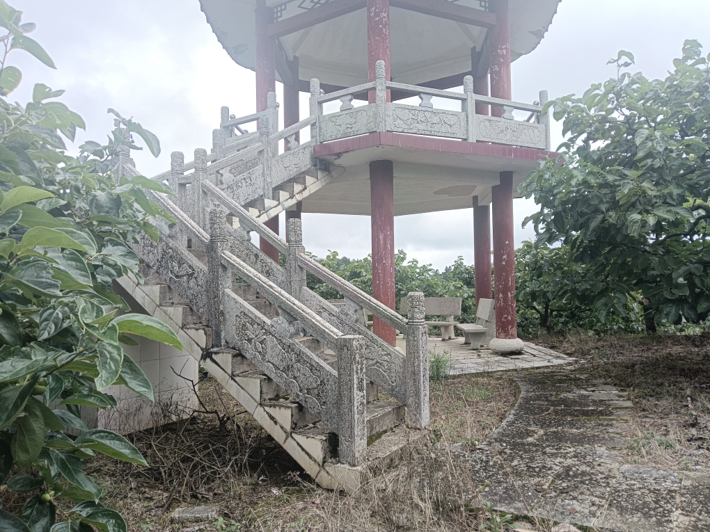 观景凉亭虽然现在少人上楼观景,台阶有苔藓显陈旧,但它的功能依然健在。