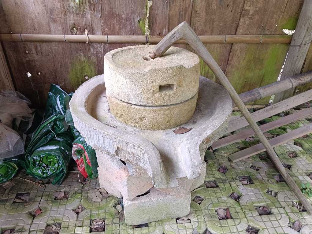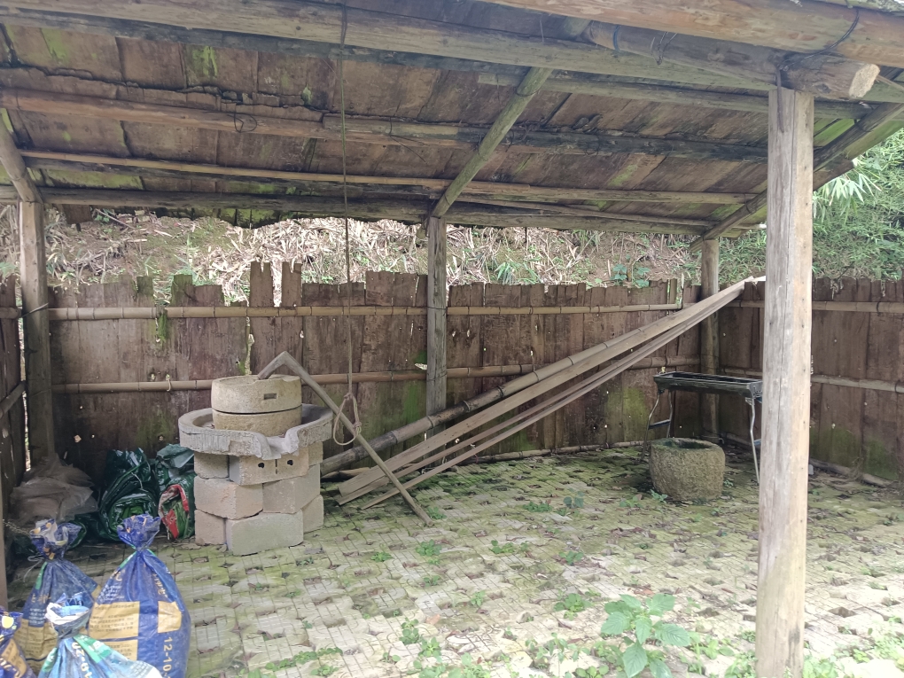 昔日怀古的石磨和石凹,依然坚守在土屋内;那些公路走道以及旁边的树木,由于还有专人清扫修整,在这仲夏的雨季里,还是整洁葱绿。