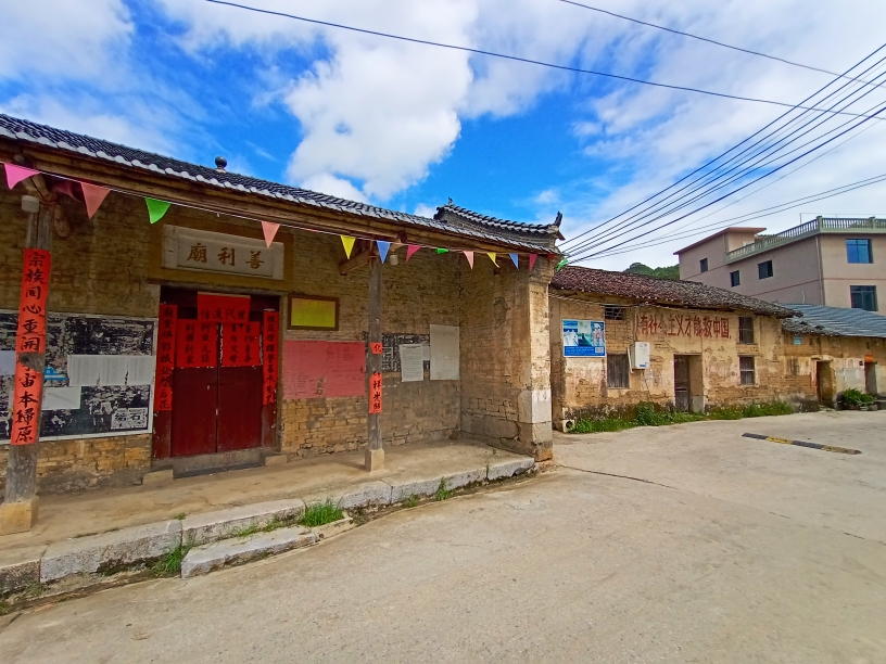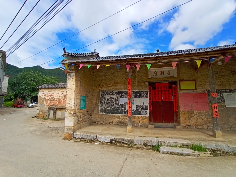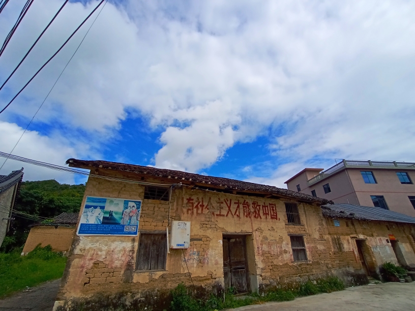 当回看古朴的沙桥村,古朴的村落,已经是新房琳琅,但是老房子依然保存着许多。村中有古朴的善利庙,看着庙前一排光滑的石头墩墩,就能感受到沙桥的古韵,再往墙上一看,有部分还保留着上世纪那个年代的毛主席头像,与建设社会主义的标语“只有社会主义才能救中国”。