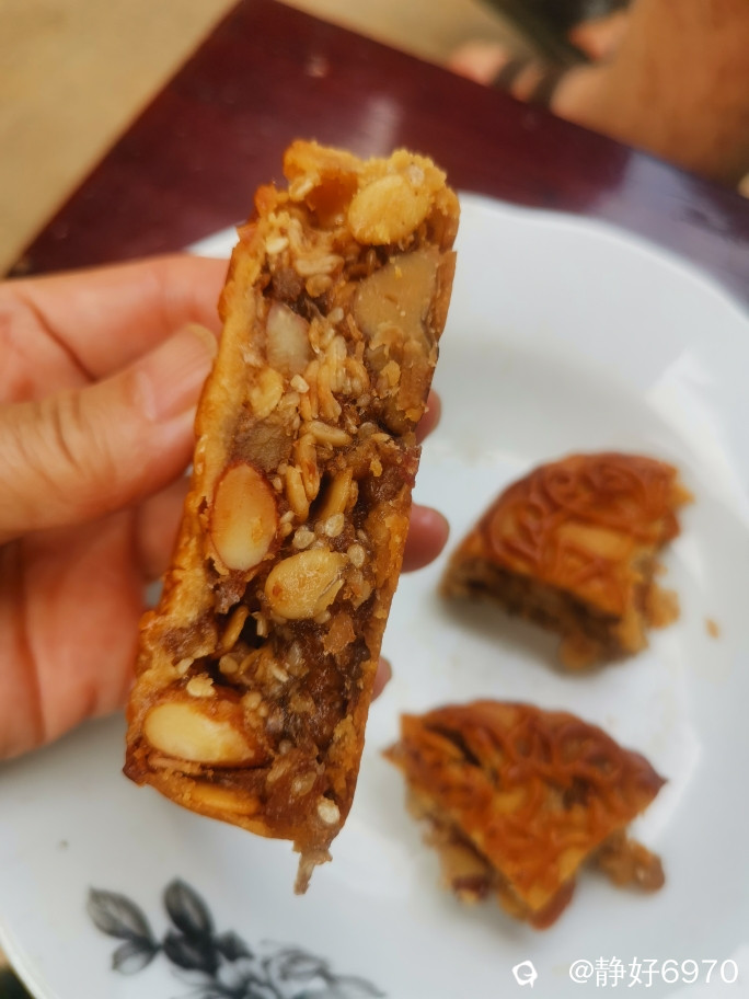 首先开启我的最爱——五仁月饼。在老一辈眼里,只有吃了五仁月饼才算过中秋。五仁月饼作为中国传统月饼品种之一,象征五福临门,既长寿,富贵,康宁,好德,善终,寓意吉祥如意,团圆美满!