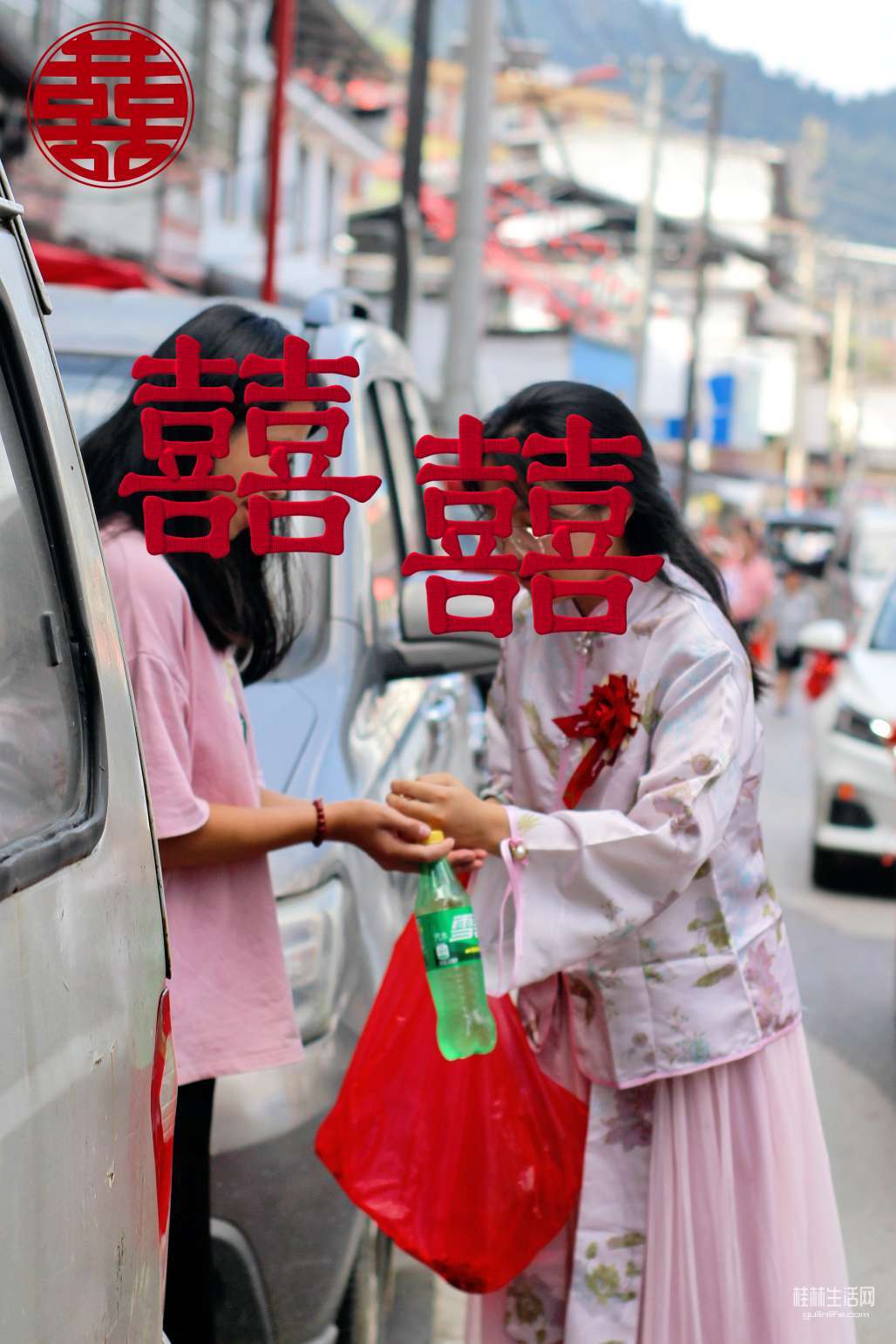 我背着重重的行囊,挎着相机,一路跟随我的女孩追着婚车来到新郎的家中~