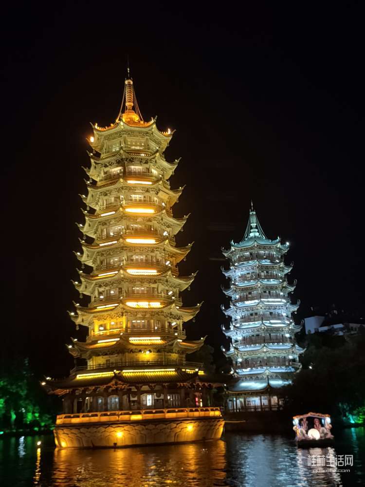 首至金银双塔下,“日月”之名藏着千年哲思——日塔为铜,以阳刚之姿耸峙,是世界最高铜塔;月塔为琉璃,以阴柔之态相伴,二者相携,恰是桂林人刻在骨血里的阴阳平衡,为这山水添了厚重的文化注脚。 桥是四湖的筋骨,也是时光的刻度。