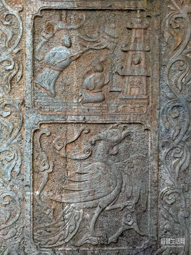 青龙桥头立有两座四方石柱碑记,其中一个字迹稍微模糊,上面记载建造日期的“造课乙酉年”几个字还算清晰。
