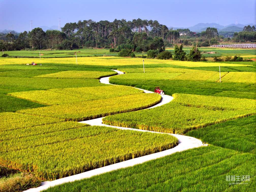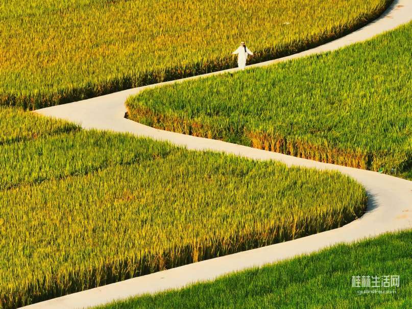 稻浪绘弧,遇见桂林横山最柔的“S”弯!远离城市的喧嚣,感受稻香的气息,一半烟火,一半诗意。