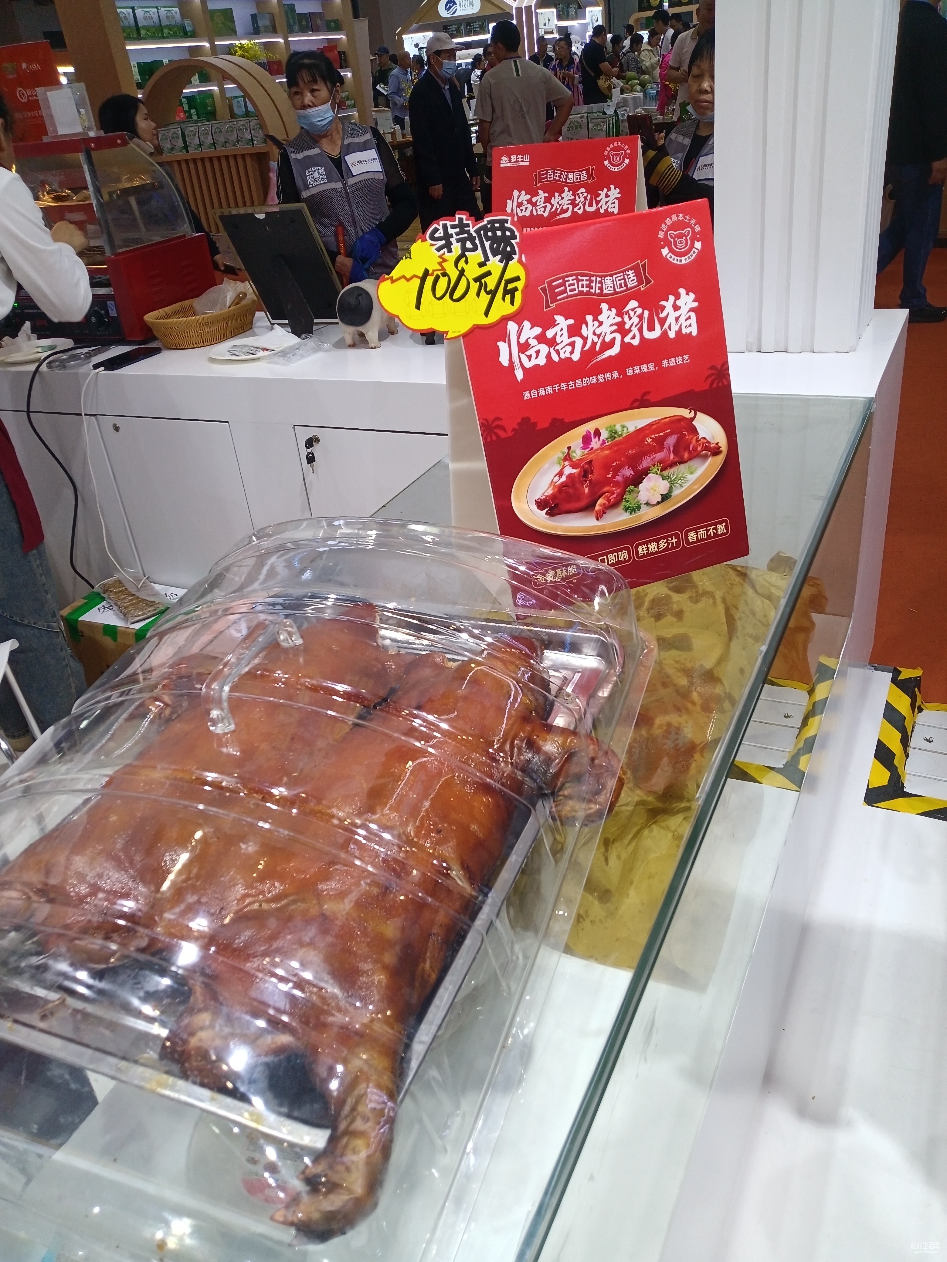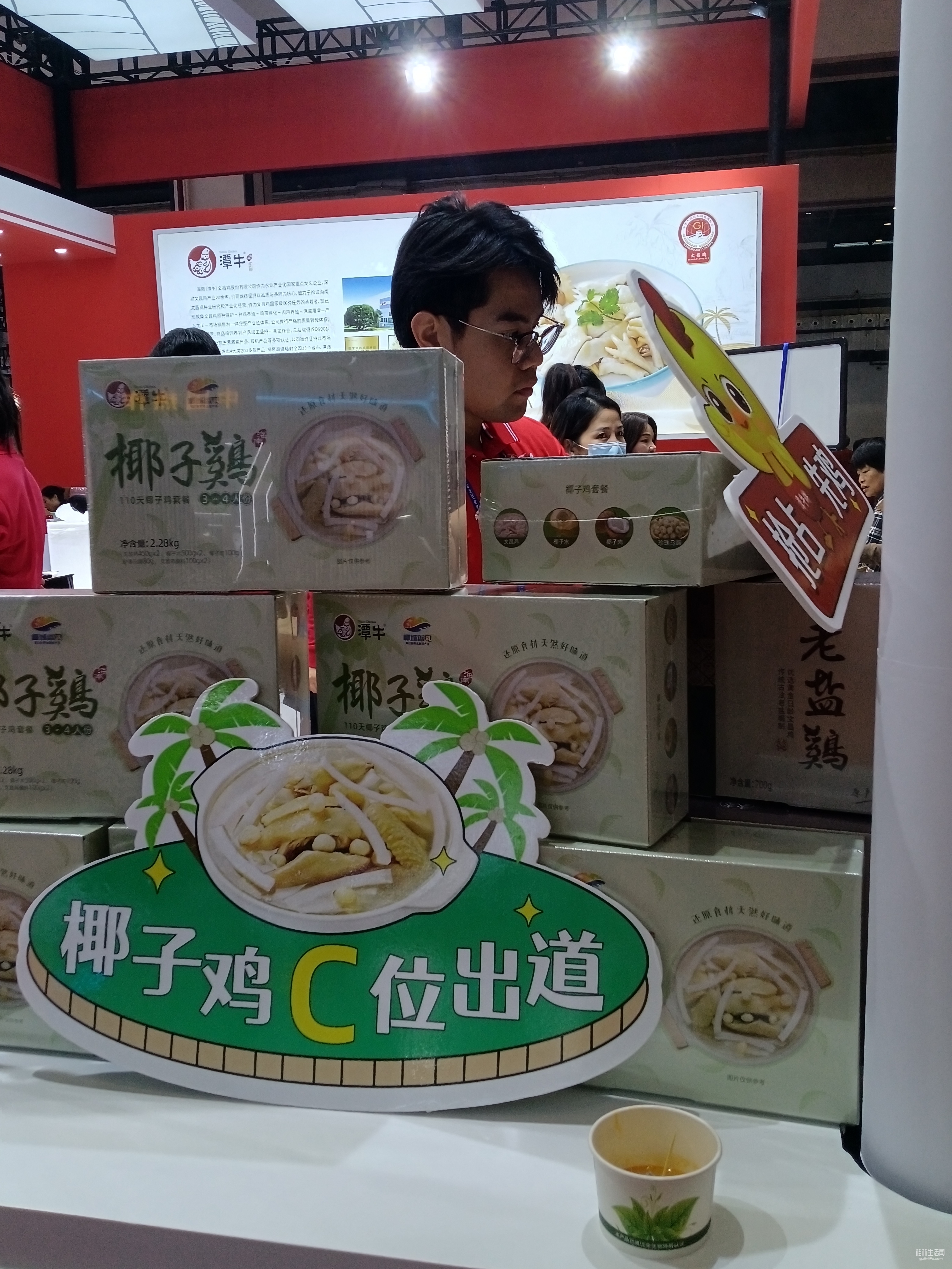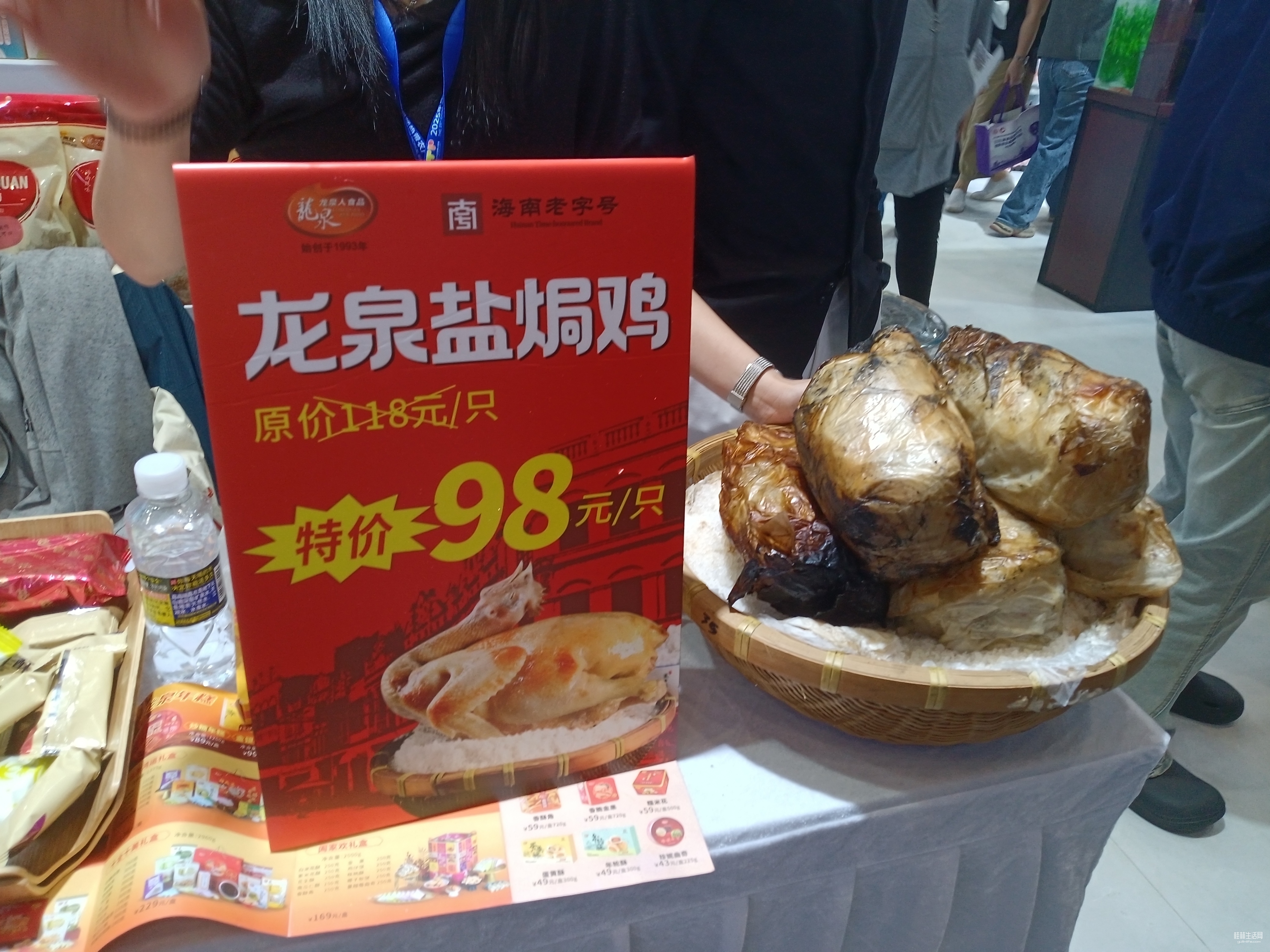 还有四大名菜之一的嘉积鸭,曾在琼中吃过,皮薄肉嫩,挺好吃。这回在展会没找到,场地太大了,逛不过来。