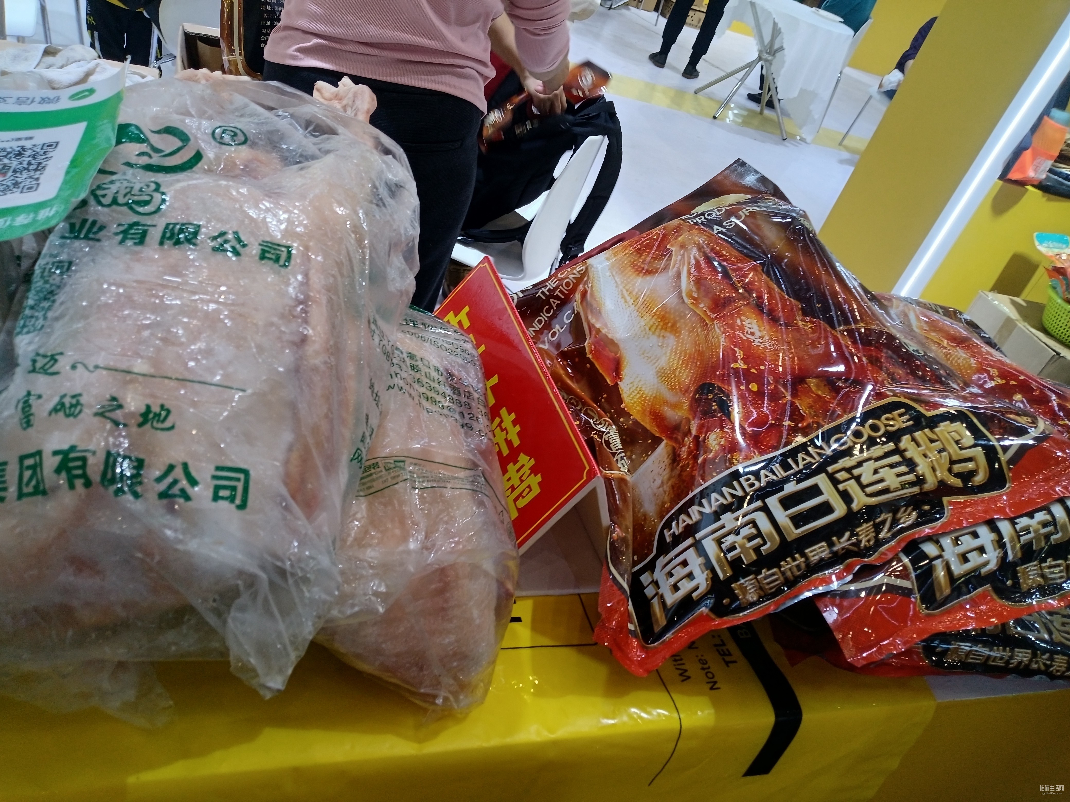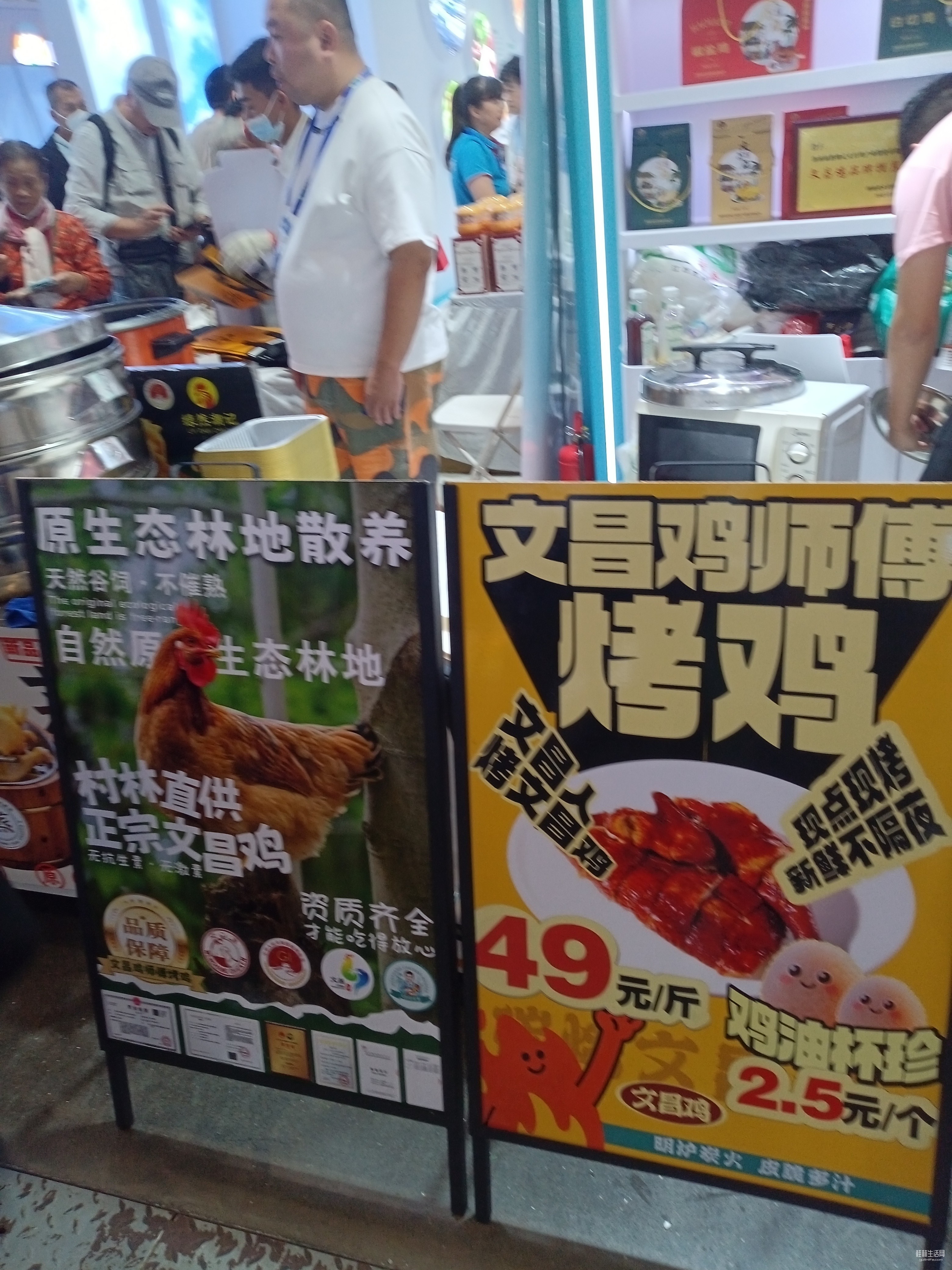 展会有几个安检入口,我顺利进场后,没有按场馆排列顺序走,而是随意闲逛。进了2号馆,就遇到去年见过的文昌小鸡。场馆里,人山人海 ,热闹非凡,好多来做直播的。