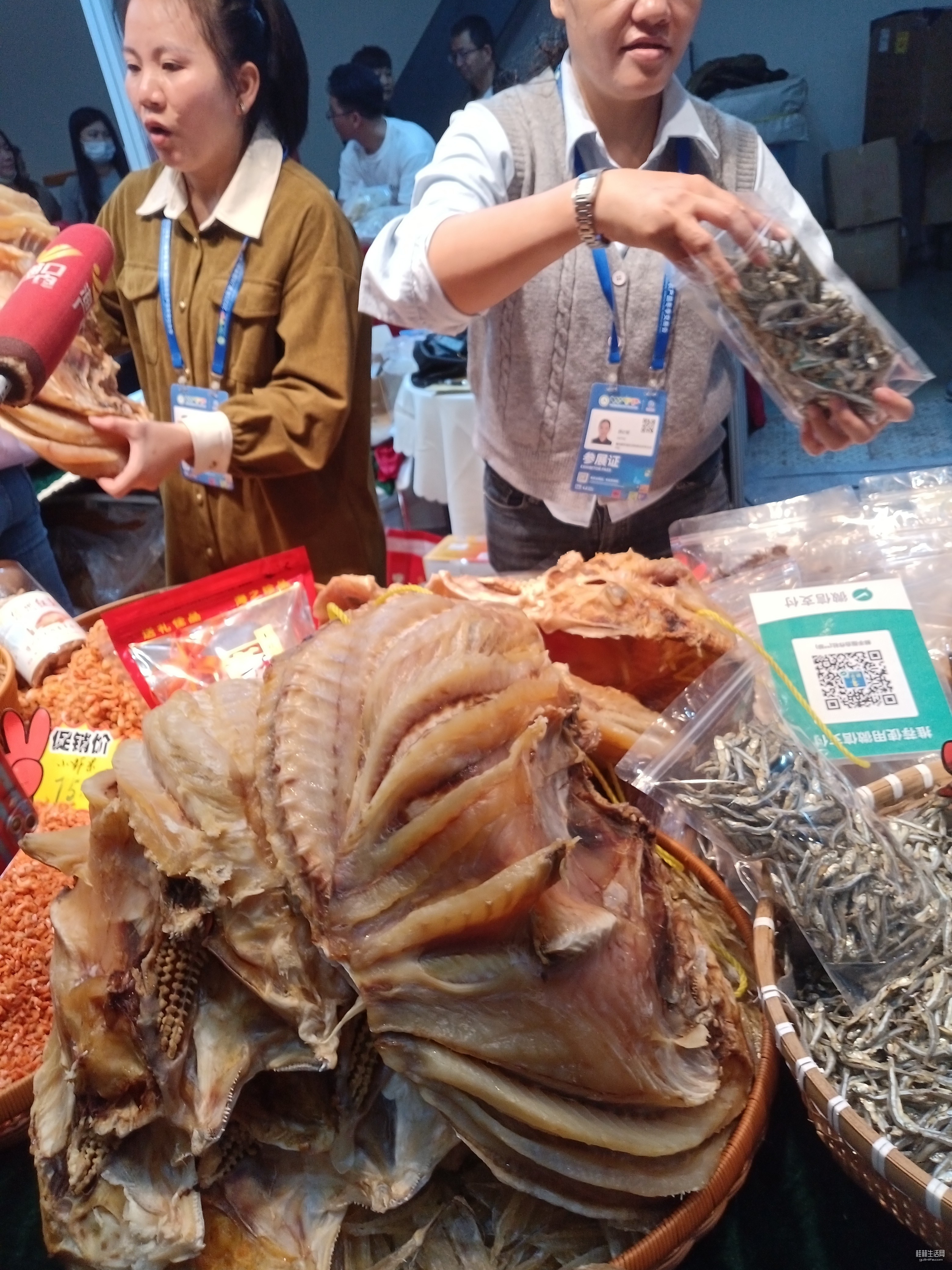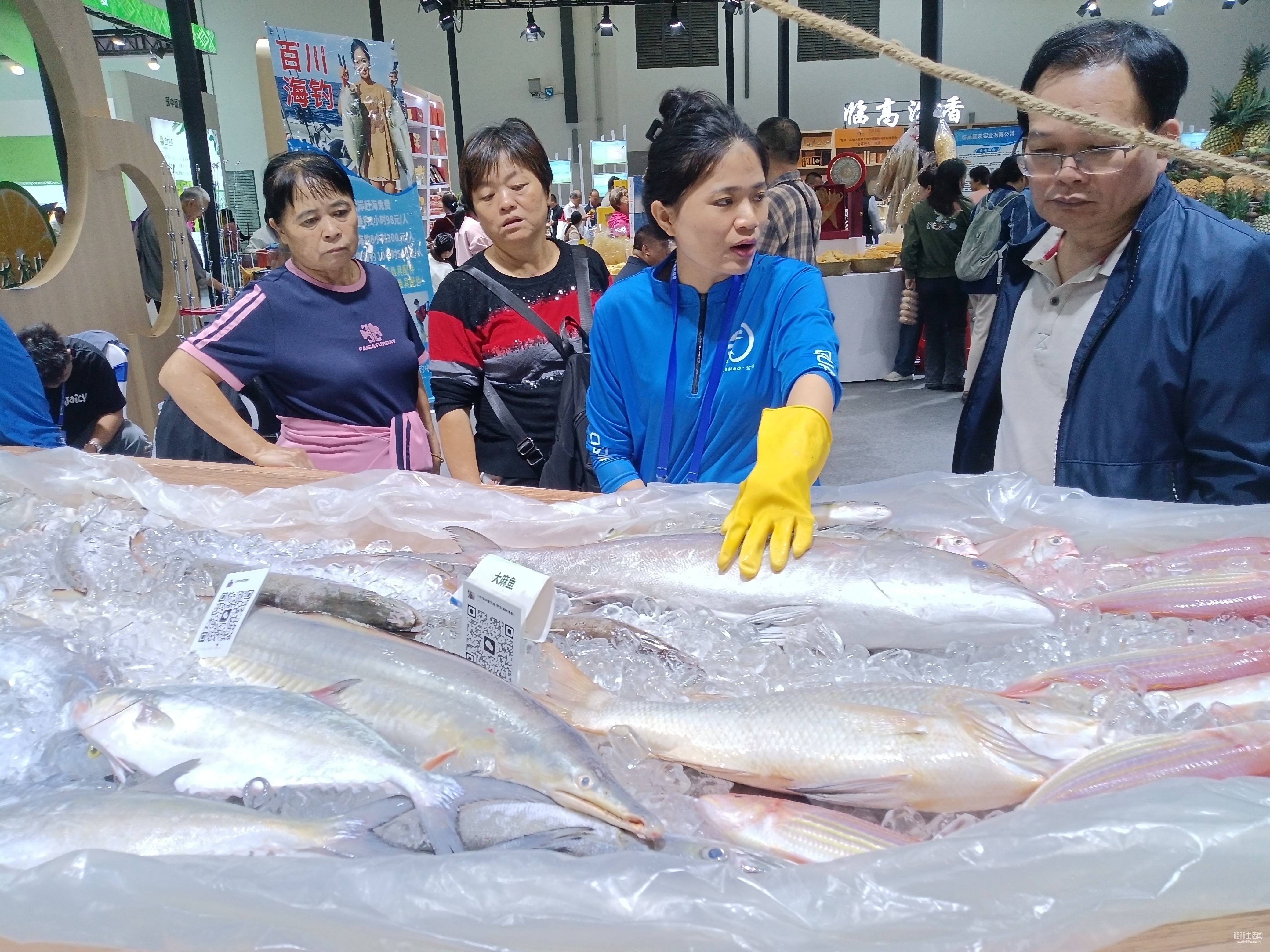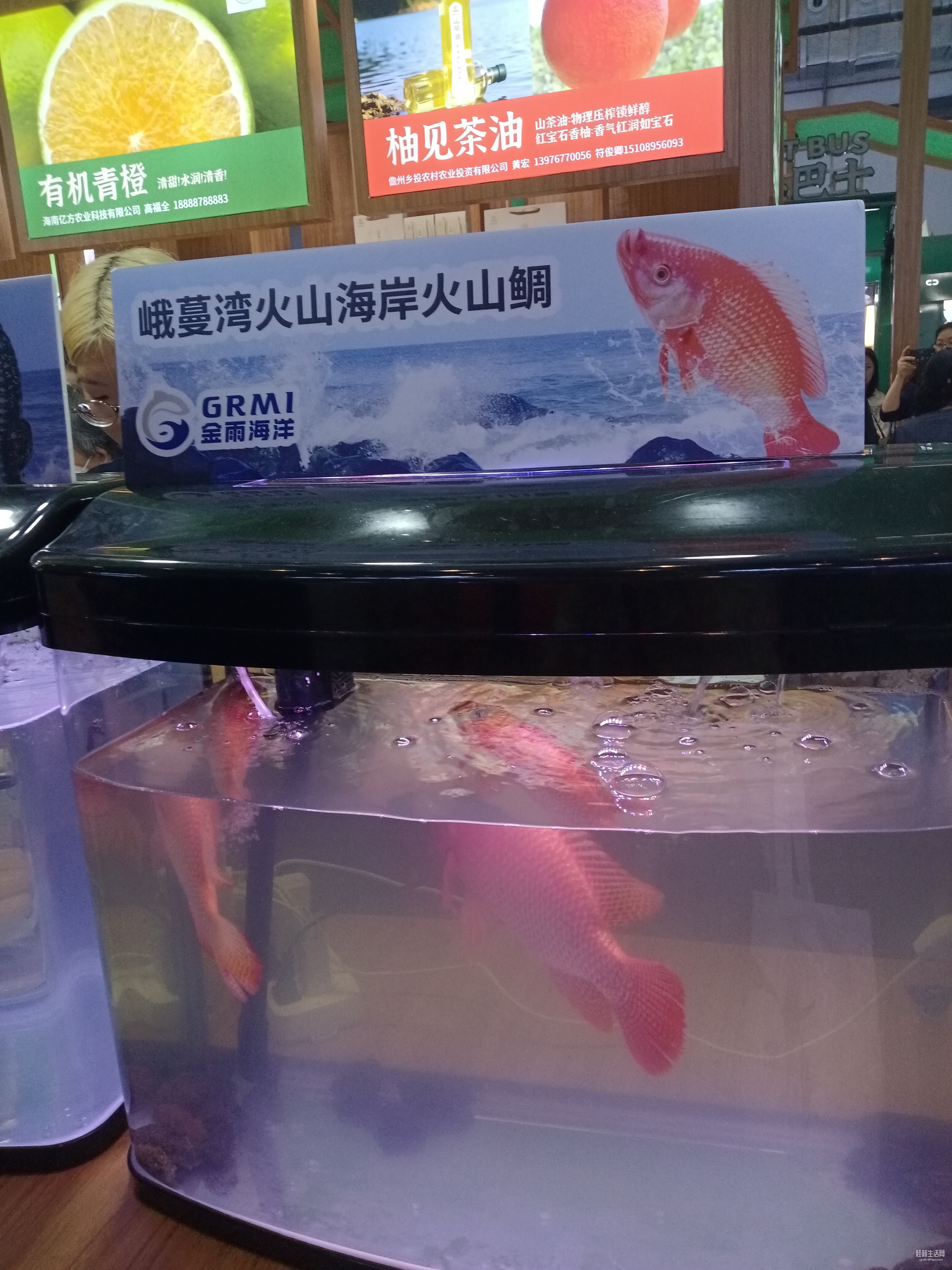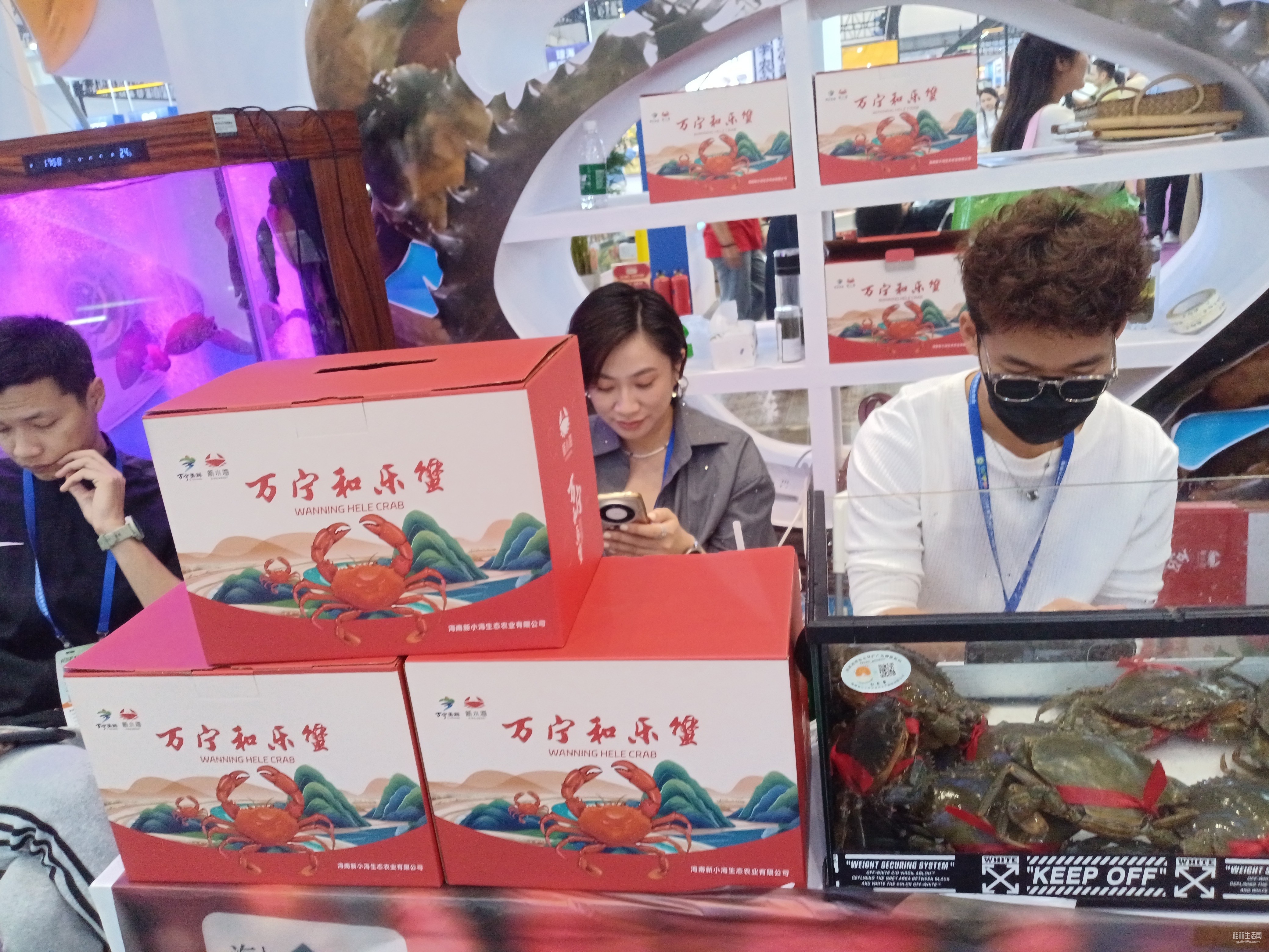 展台到处是现场直播,这是介绍万宁的海鱼。