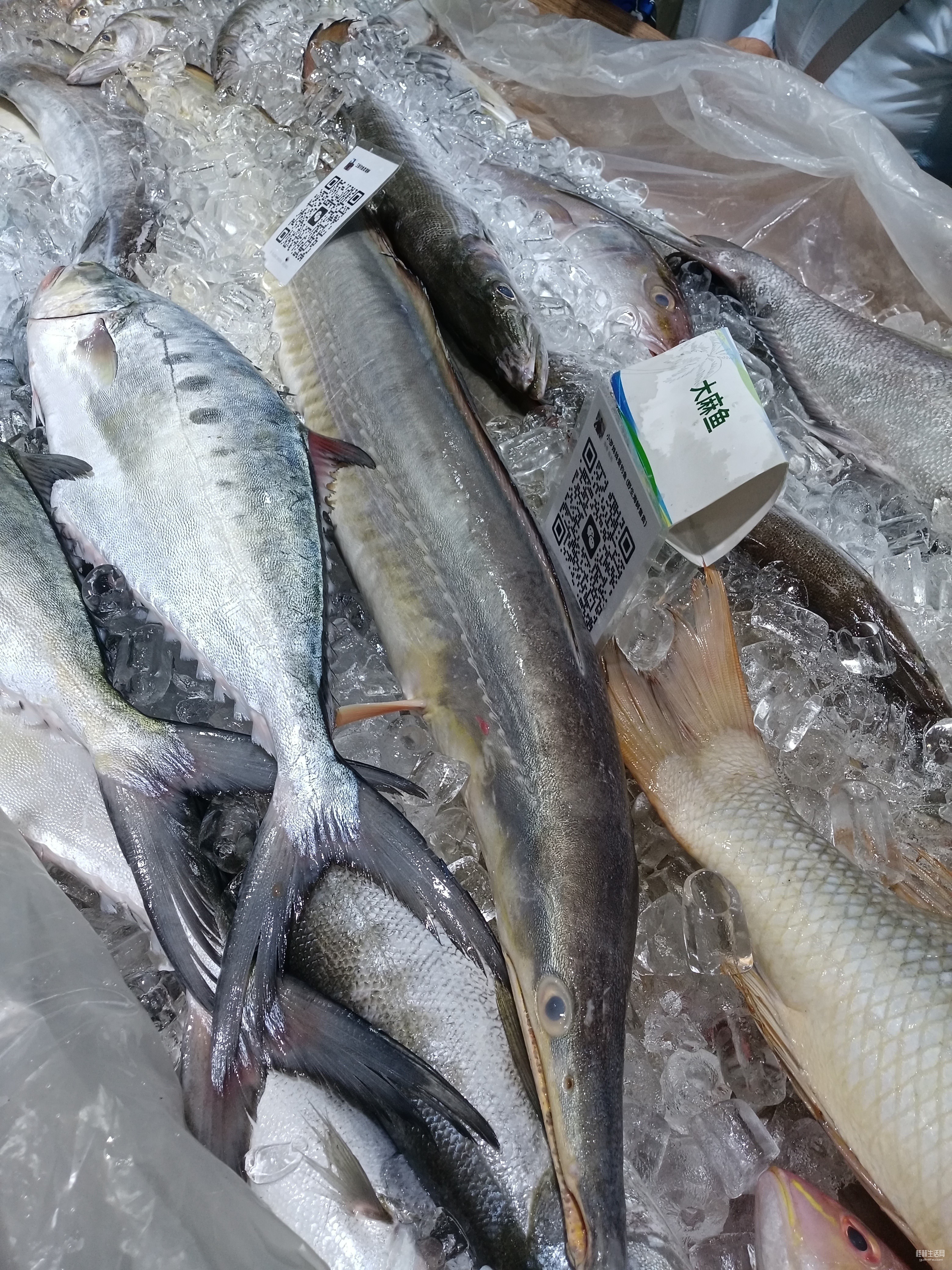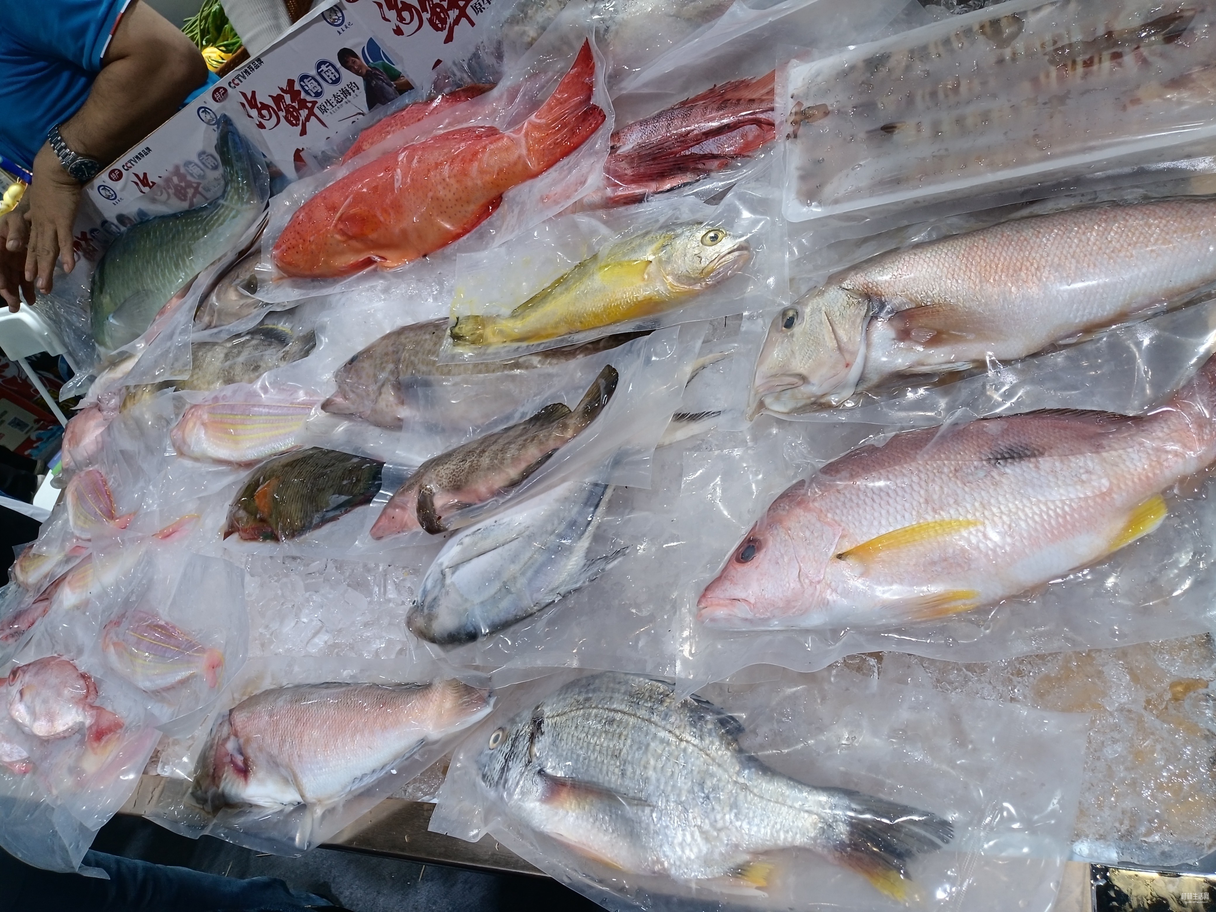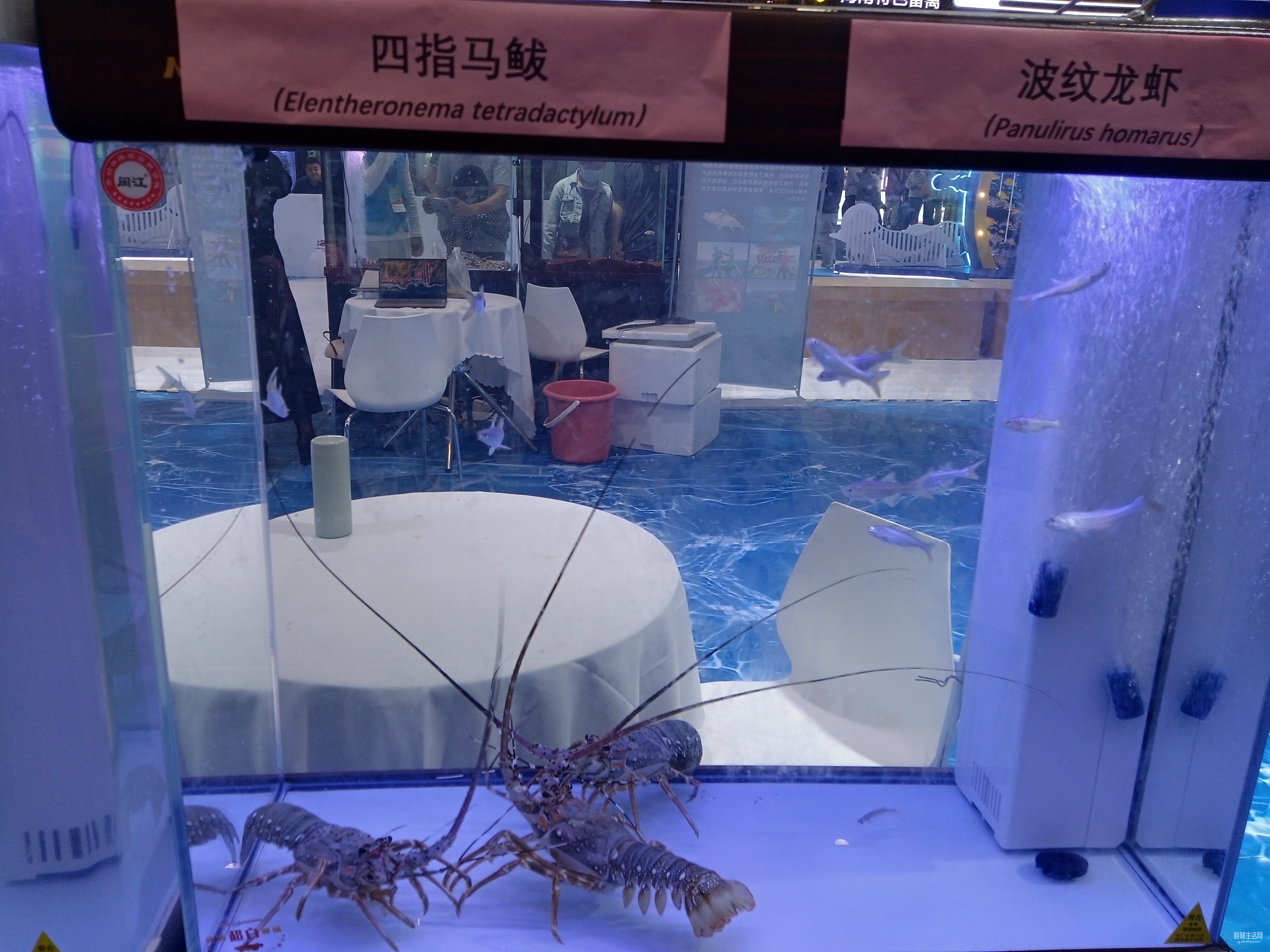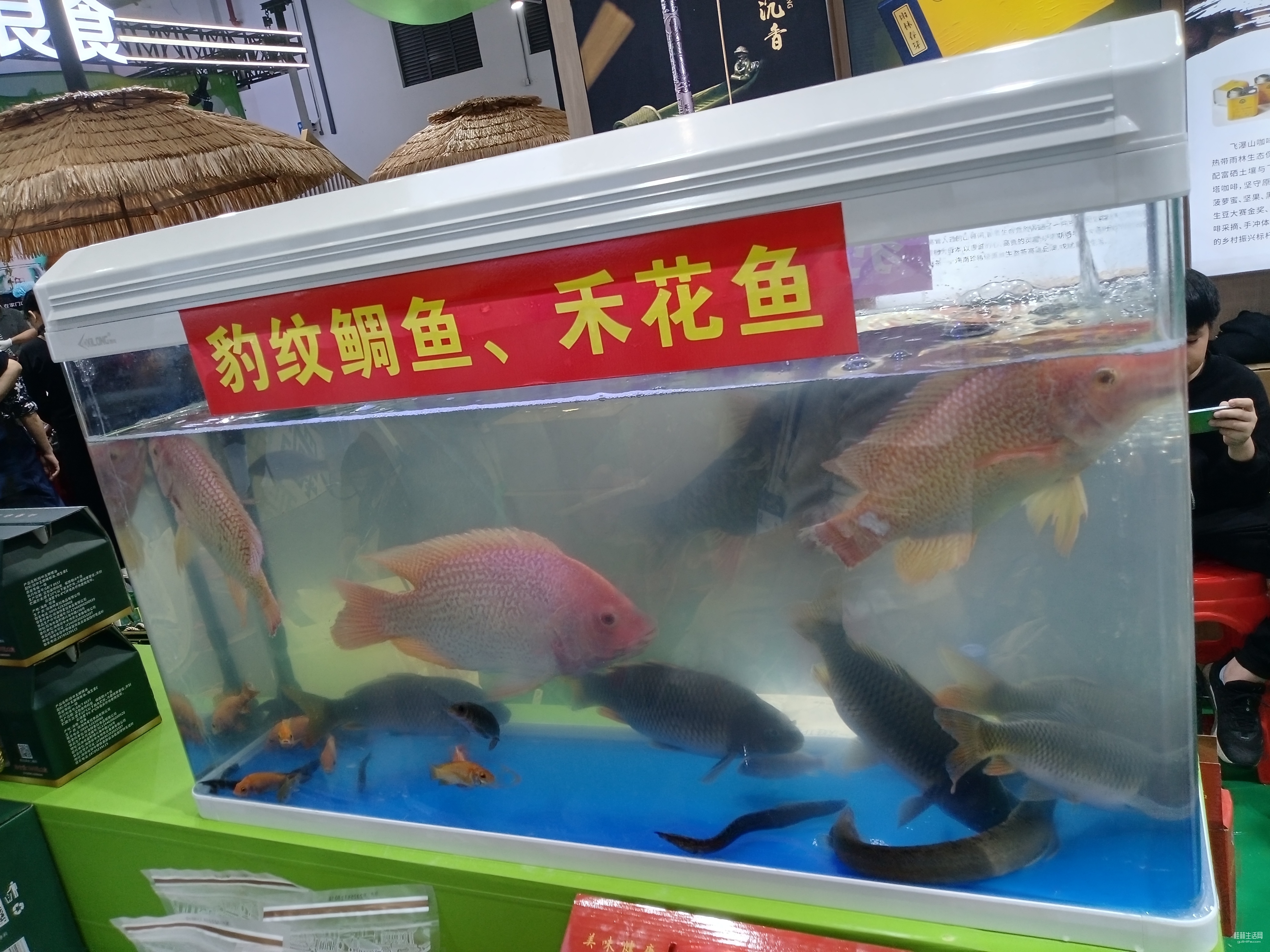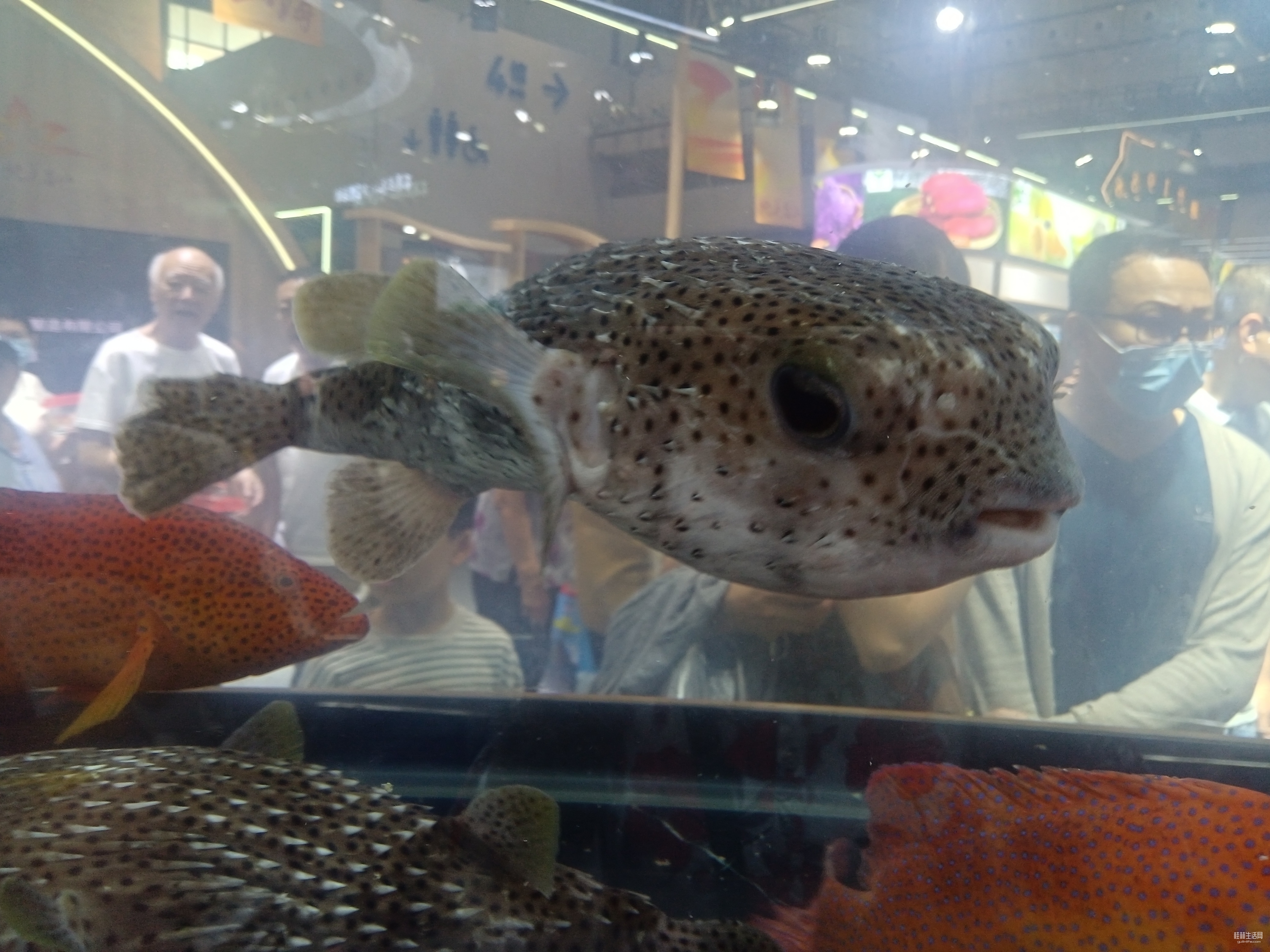 展台到处是现场直播,这是介绍万宁的海鱼。