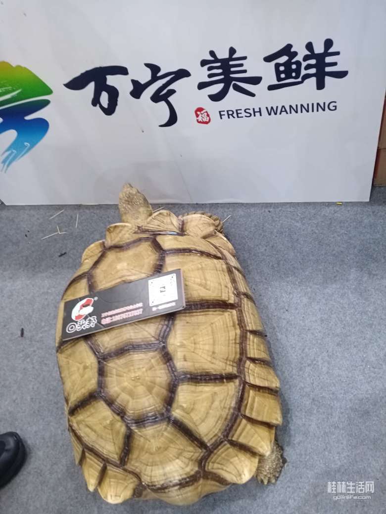 “口头邦”养殖公司的移动广告,此大龟,挺通人性的,慢悠悠地在展台周边转来转去,引来观众围观拍照。