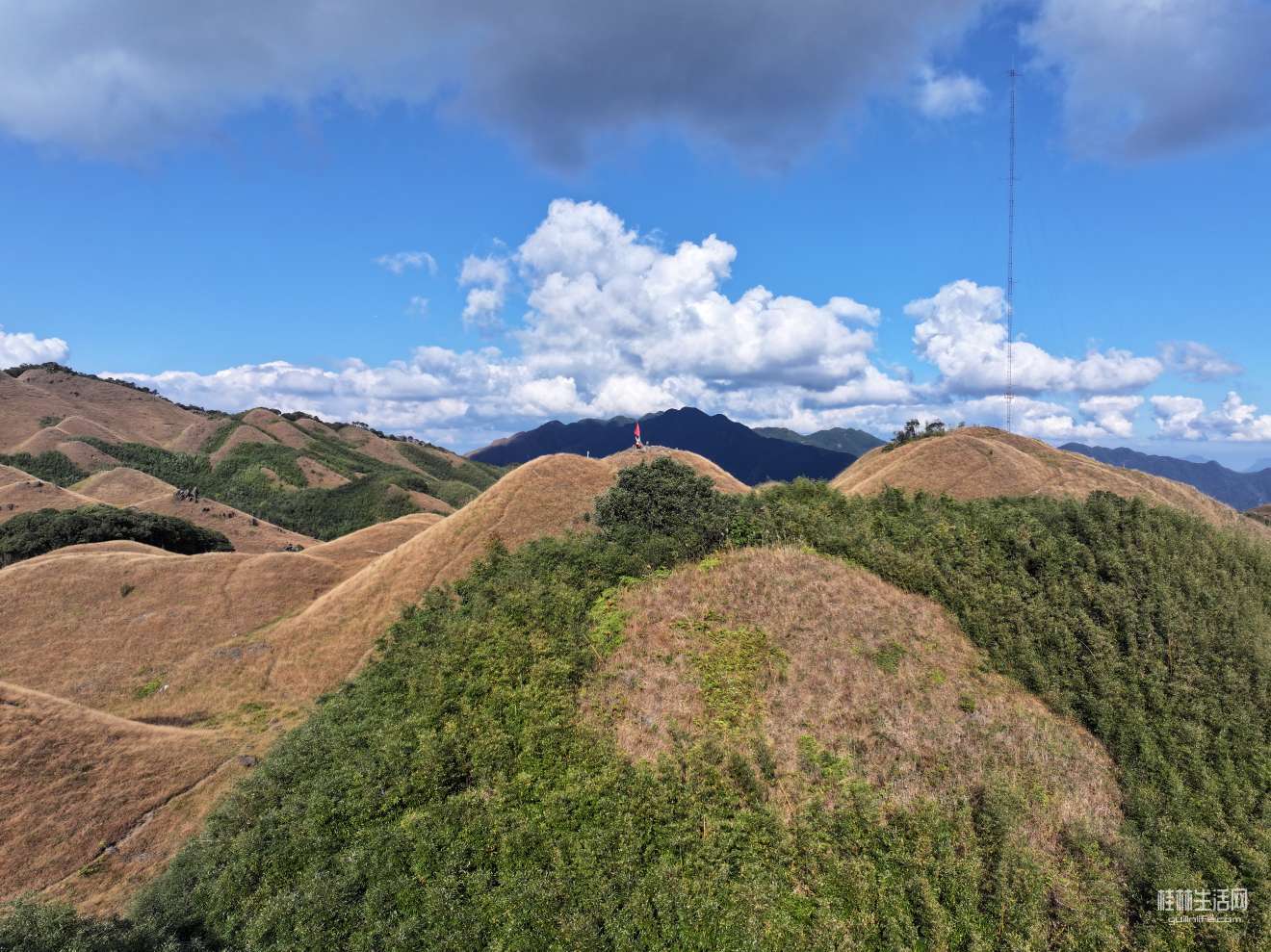若逢晴日,云海漫山而来,界碑与草场在云雾中时隐时现,徒步者穿行其间宛如踏云而行。