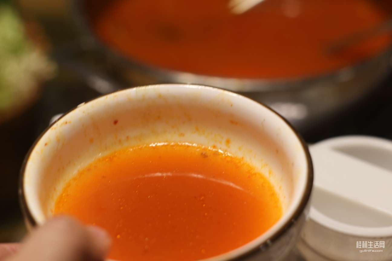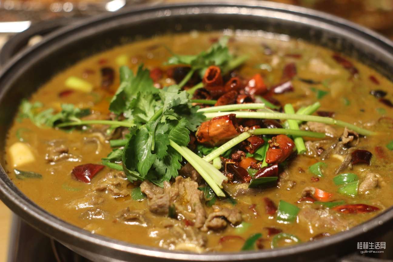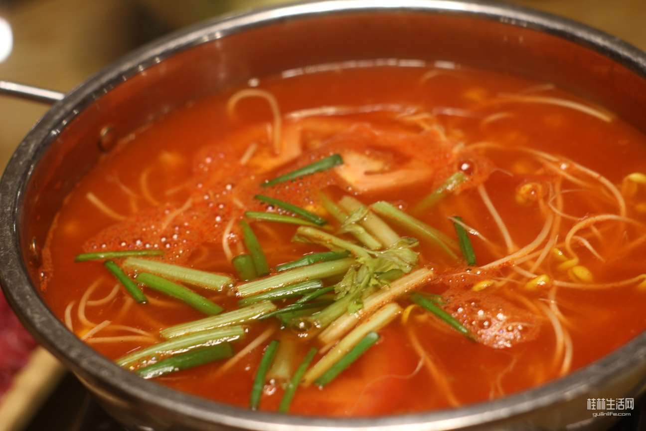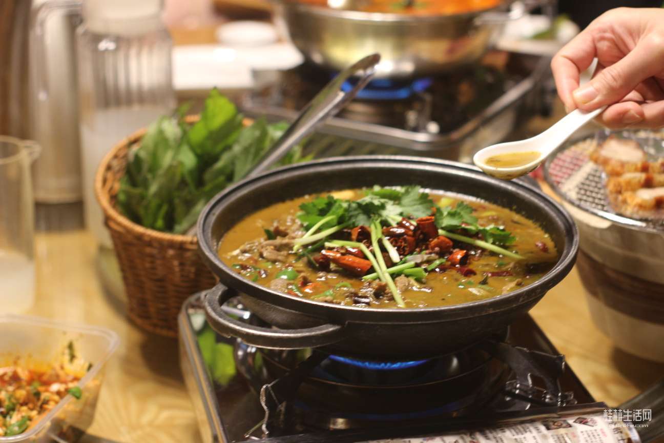 屁股刚坐热,热情的侗家阿婶端上了秘制酸汤牛肉火锅,看起来非常秀色可餐。