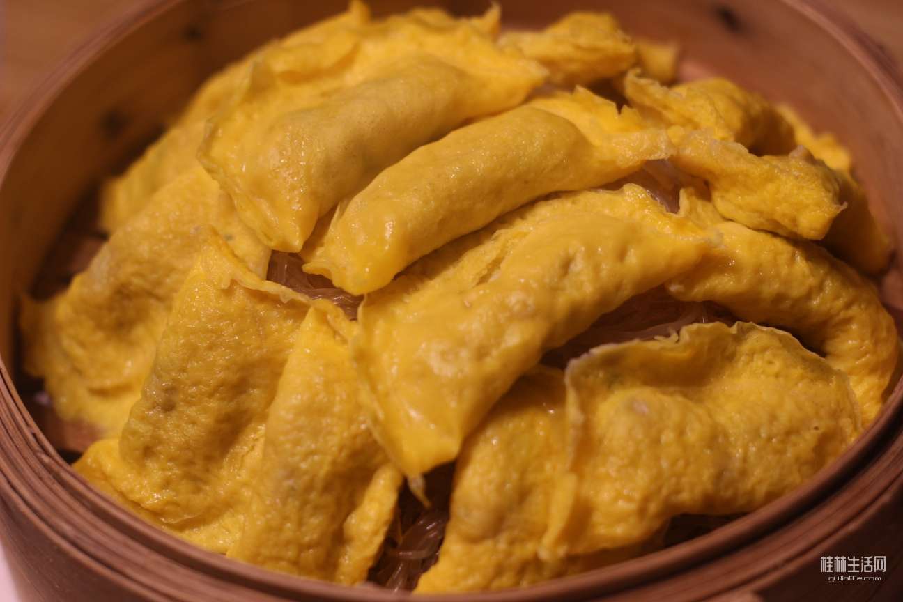 侗家手工蛋饺,比较清淡的一道菜,蛋饺下面是粉丝,可以做主食,蛋饺里面的肉沫清清爽爽,只要对鸡蛋不过敏,天南海北的食客都合得来~