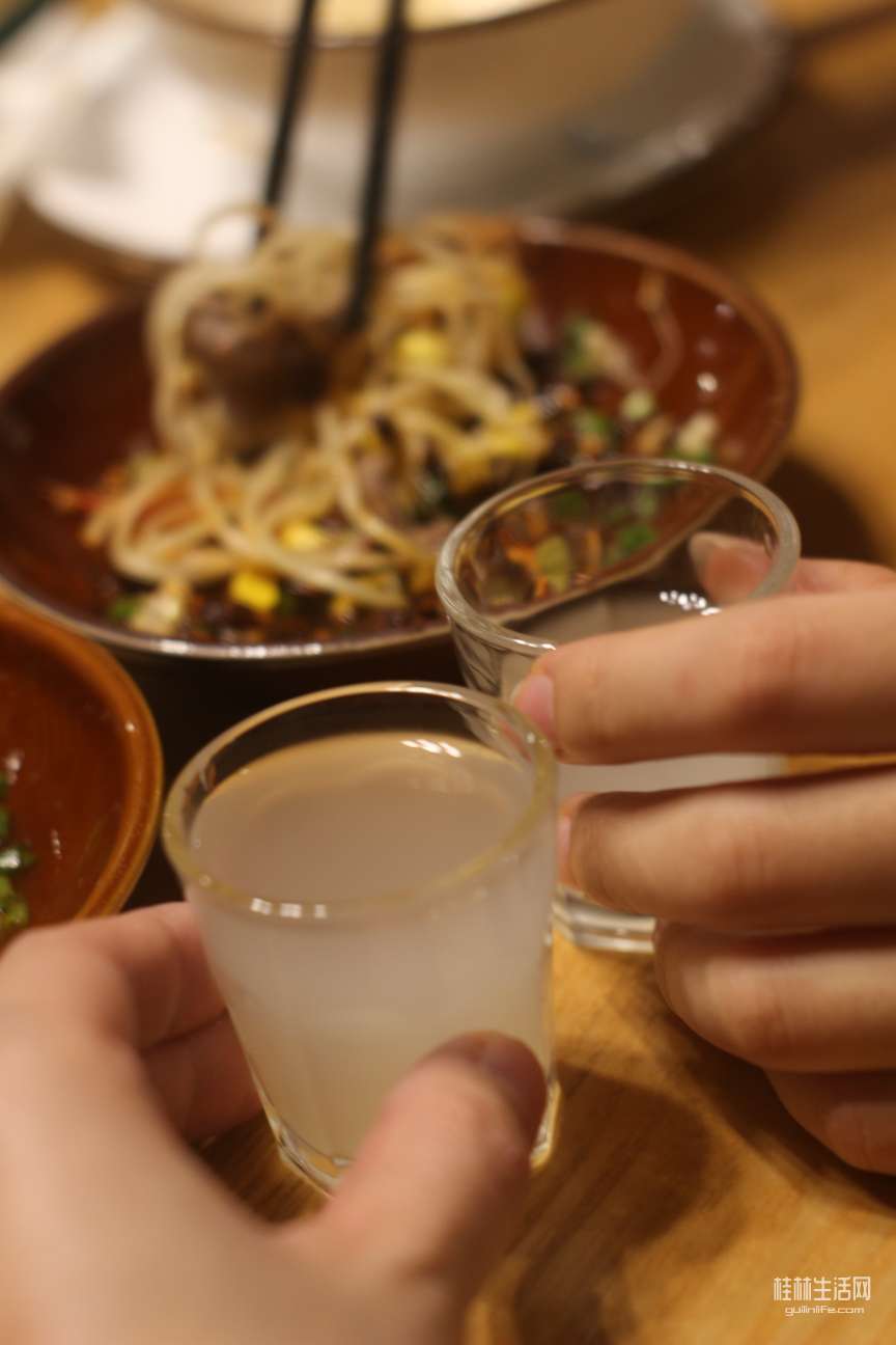 侗家阿婶还免费赠送了当地的糯米酒,大概二十几度,而我而言,这像喝米酒一样!小小意思辣(我的指甲有点过长,那是因为留作美甲用)~