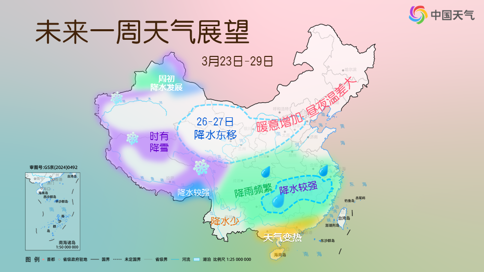 啥时候才能天晴?预计未来一周将有两次弱冷空气影响广西,第一次在今天(3月23日)夜间到25日,第二次在27-28日,桂北的阴雨天气将继续续费一周