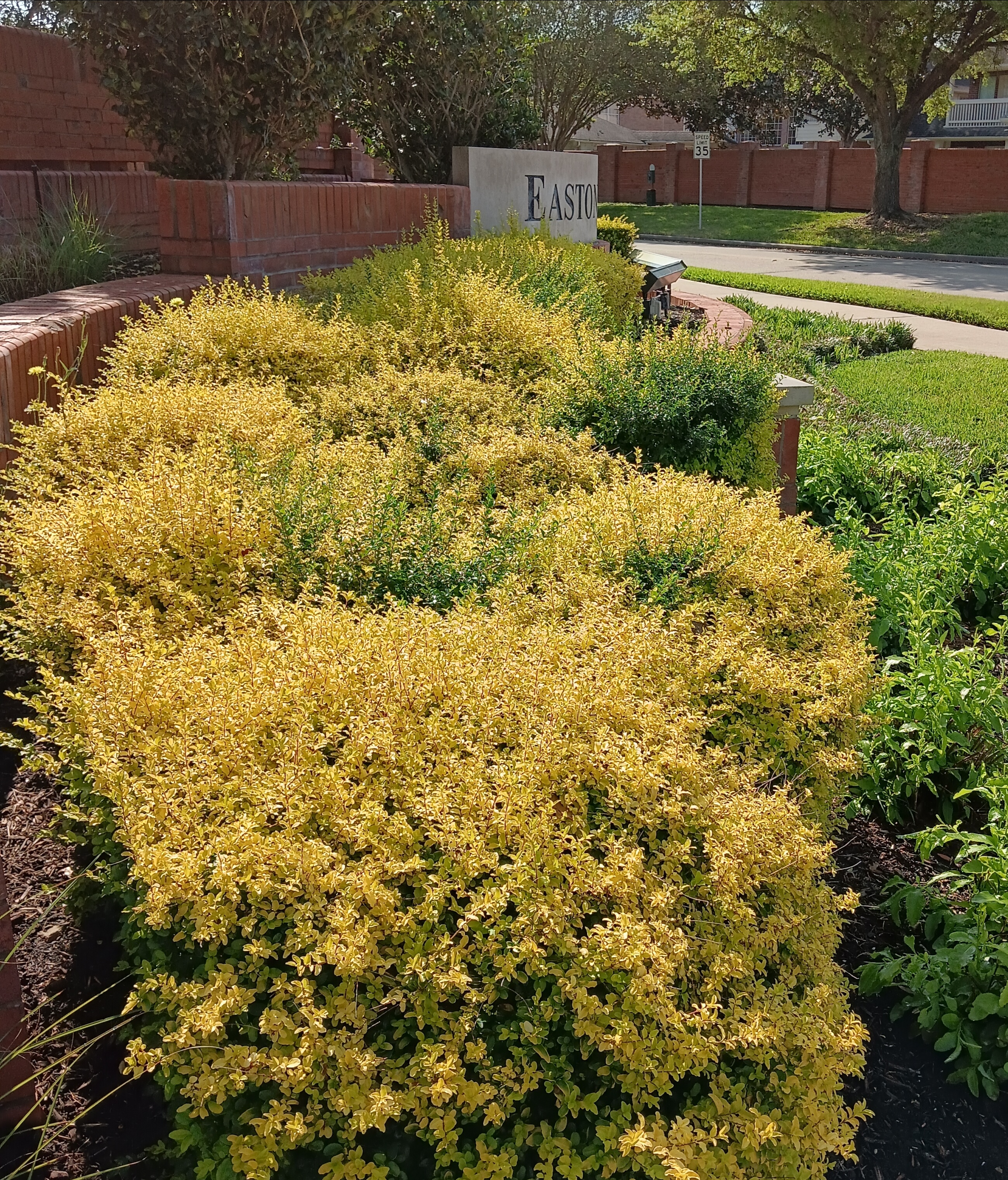 小区门口鹅黄色的花圃,颜色真好看。
