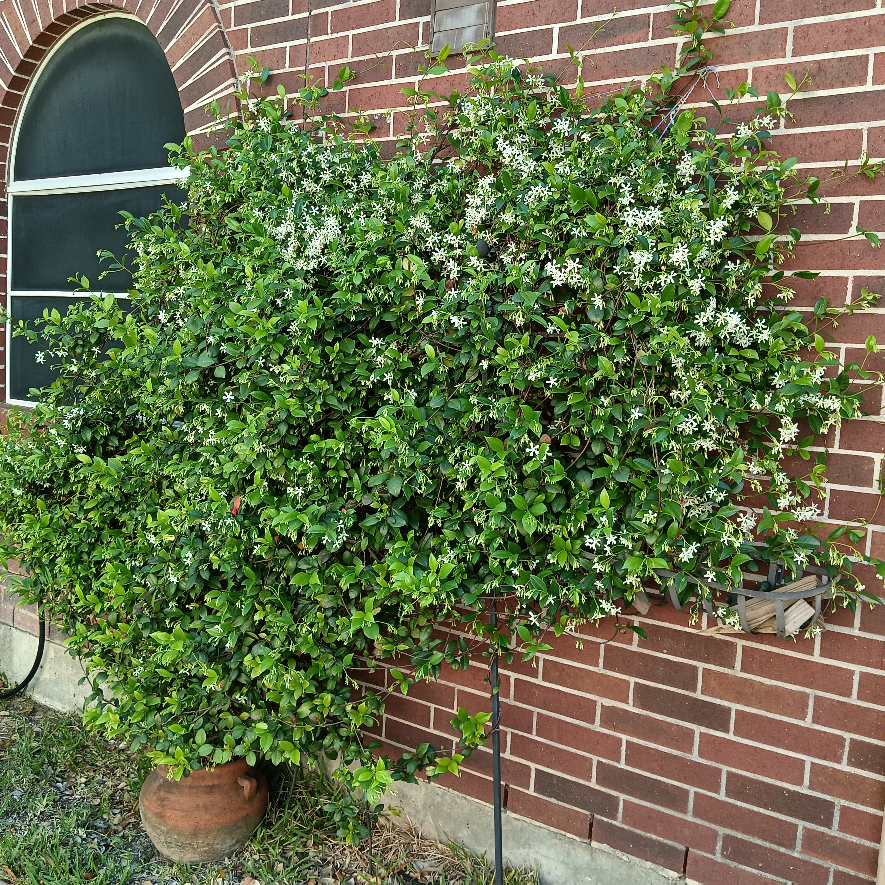 我家的攀藤星茉莉盛开,星星点点如雪花,发出淡淡的花香。
