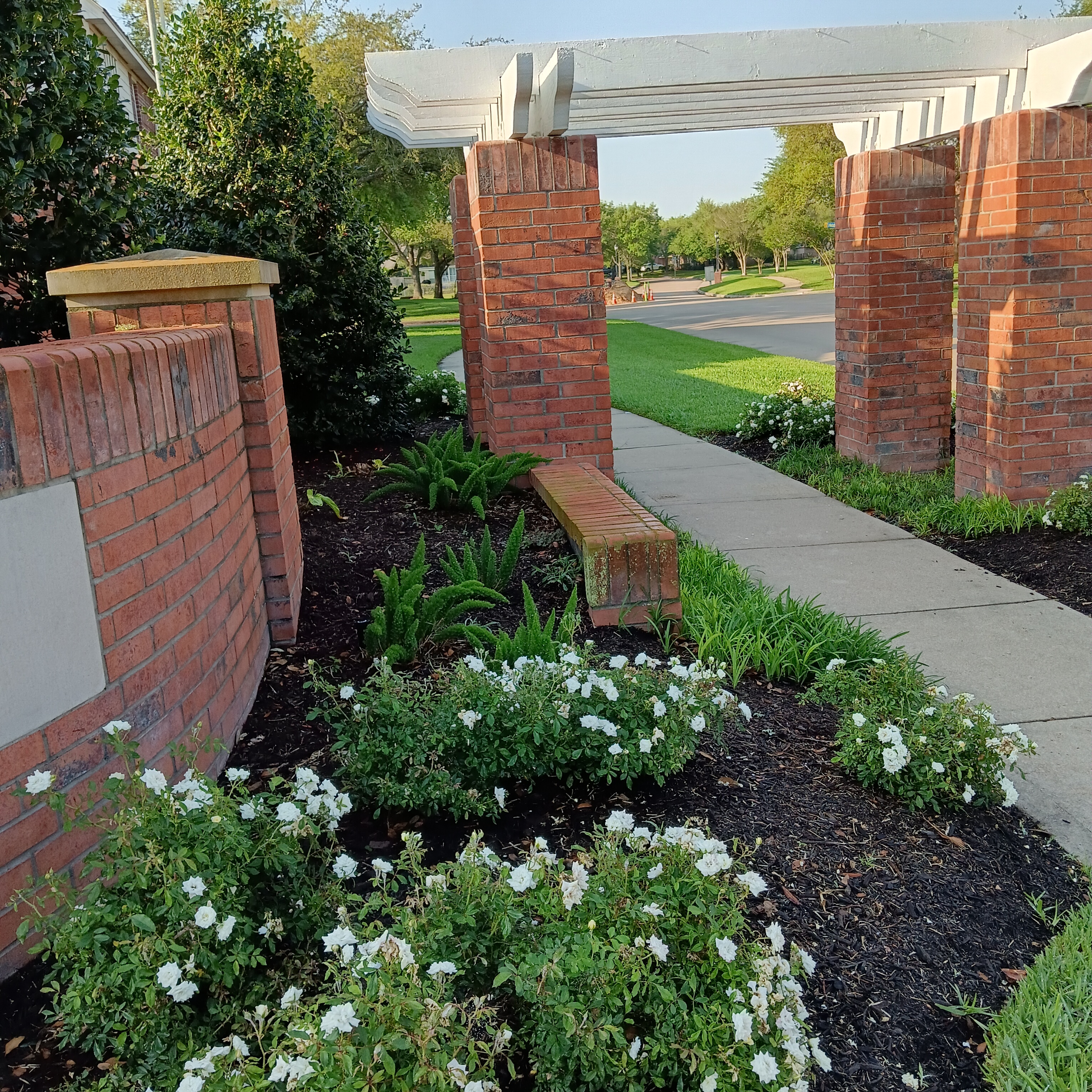 区门口的白月季开了。