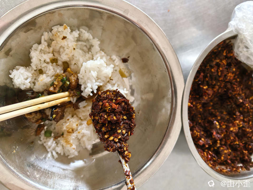 必须先来一大勺爆炒辣椒酱,整个味蕾被激发,吃光一盘饭。😋