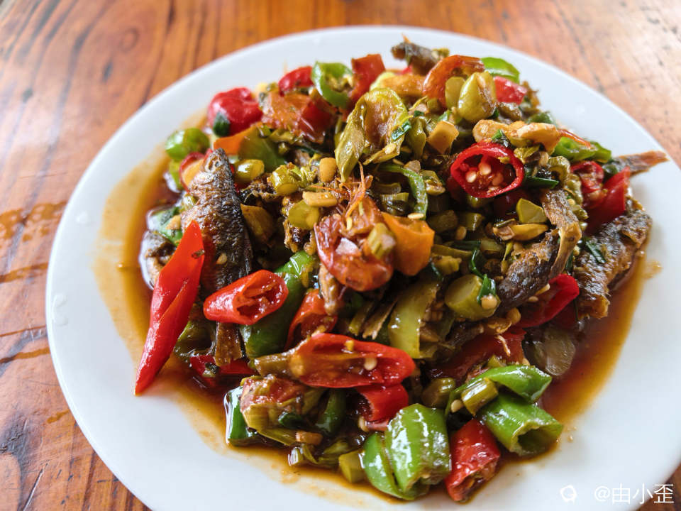 辣椒小鱼干,红辣椒青辣椒放进去爆炒,既是主菜也是佐料,小鱼干都成为了男二号。😋