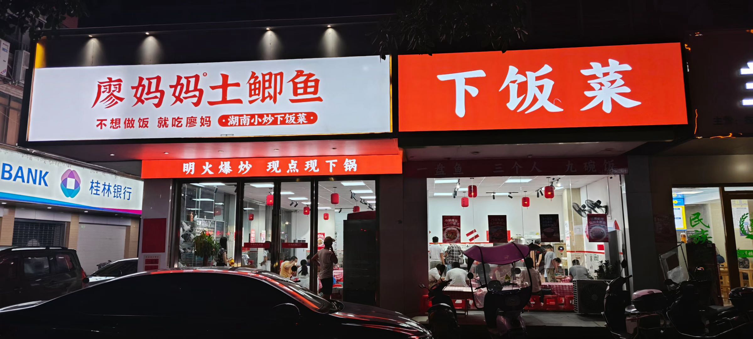 最早在桂林看到的是“廖哥土鲫鱼”,现在到处都是姐啊 叔啊 妈啊 婶啊土鲫鱼 装修风格和广告 吃饭口号 价格都差不多,各种美味小炒…反正说实话那个价格真心不舍得吃(吃不起)