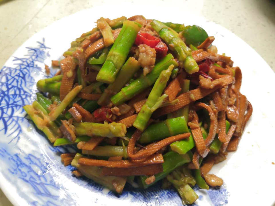 春笋与豆腐丝,肉沫一块小炒,脆嫩的笋混合着肉的鲜美,豆腐丝的绵软,构成了春天特有的味道!