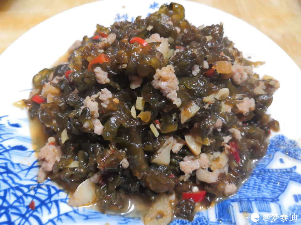 也有人喜欢把艾叶粑做头菜肉沫馅口味的。
