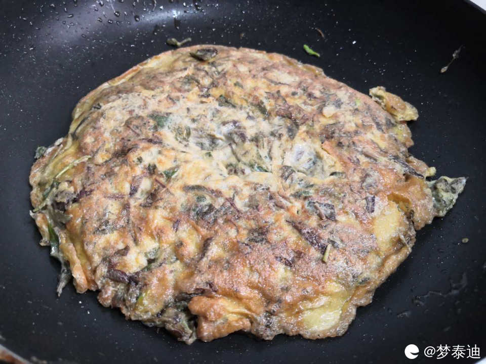 中小火煎蛋饼,翻面后即可出锅。
