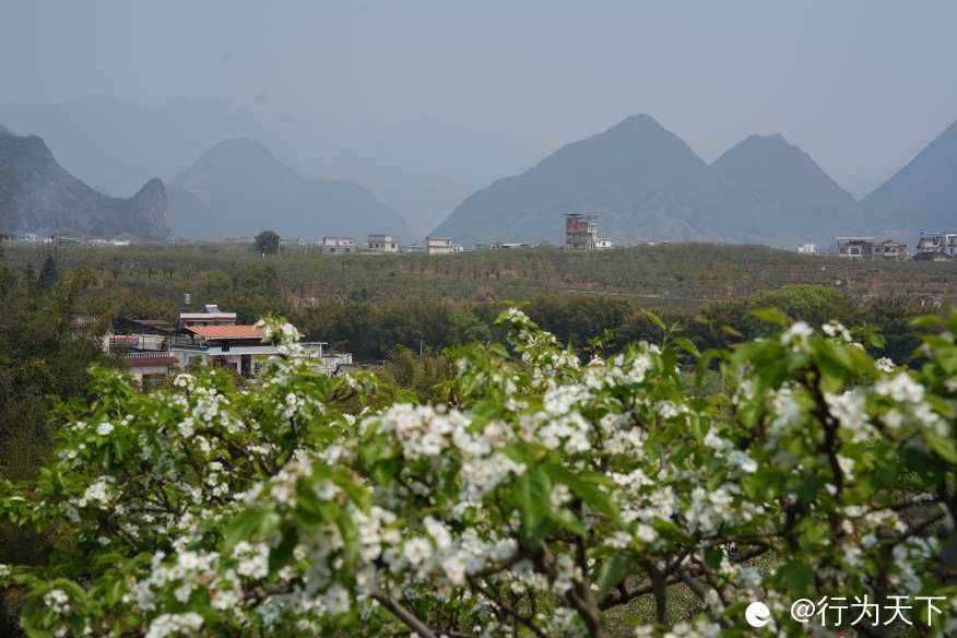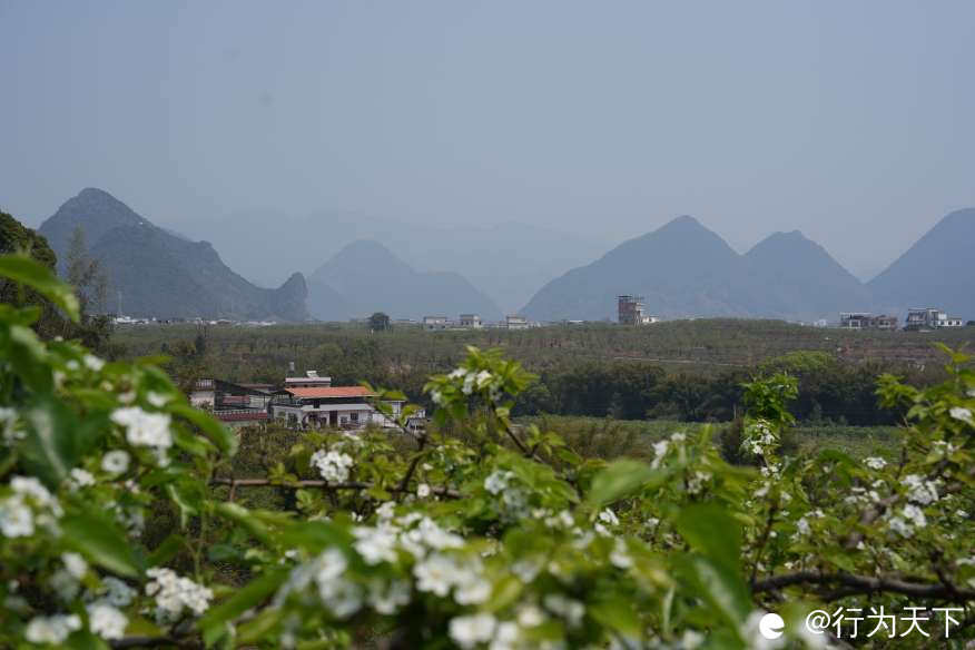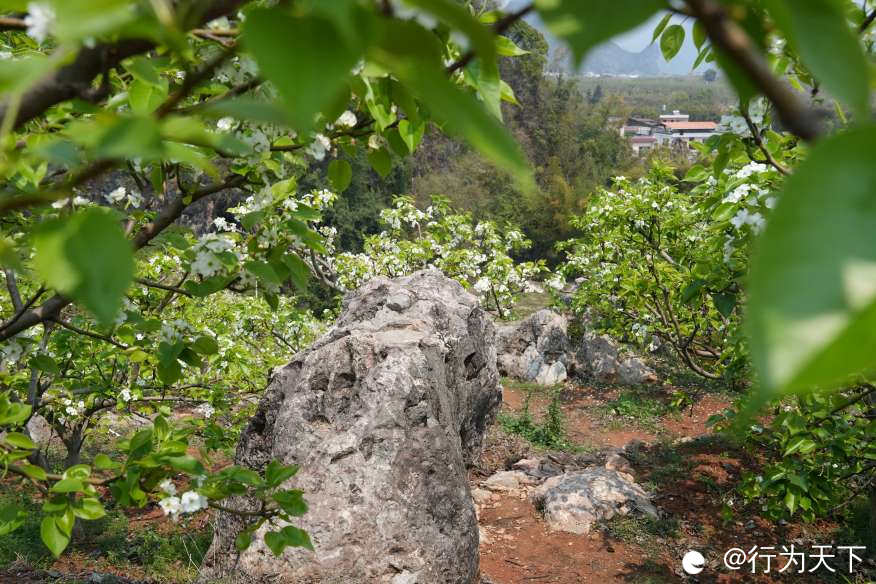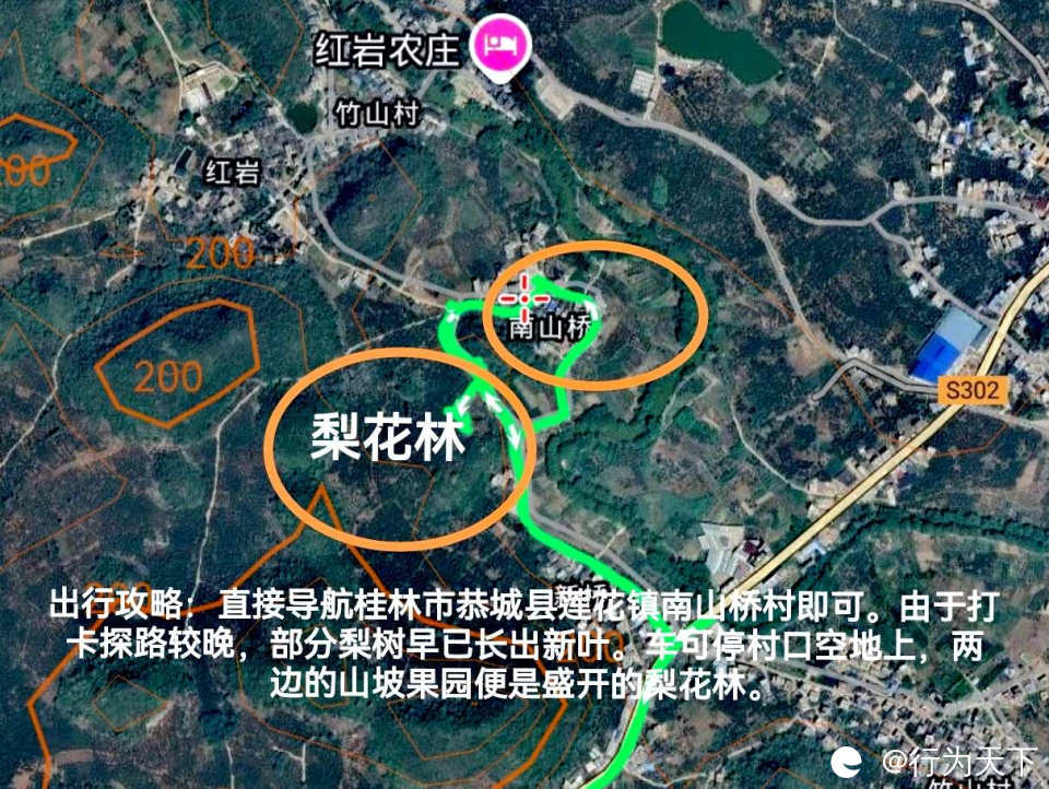 出行攻略:直接导航桂林市恭城县莲花镇南山桥村即可。由于打卡探路较晚,部分梨树早已长出新叶。车可停村口空地上,两边的山坡果园便是盛开的梨花林。