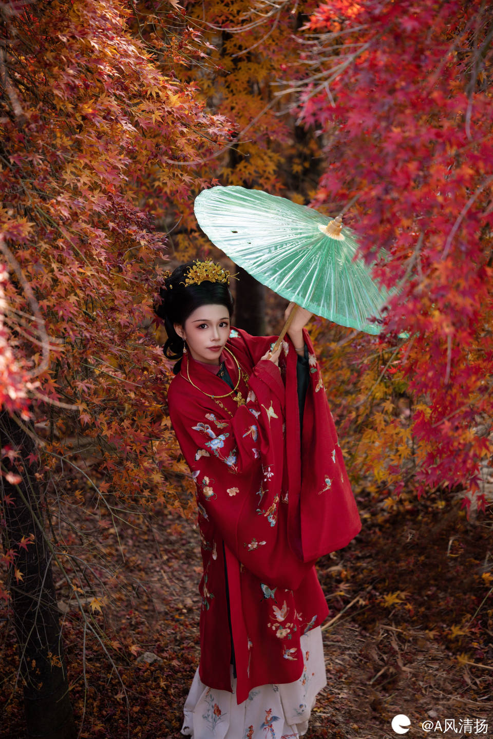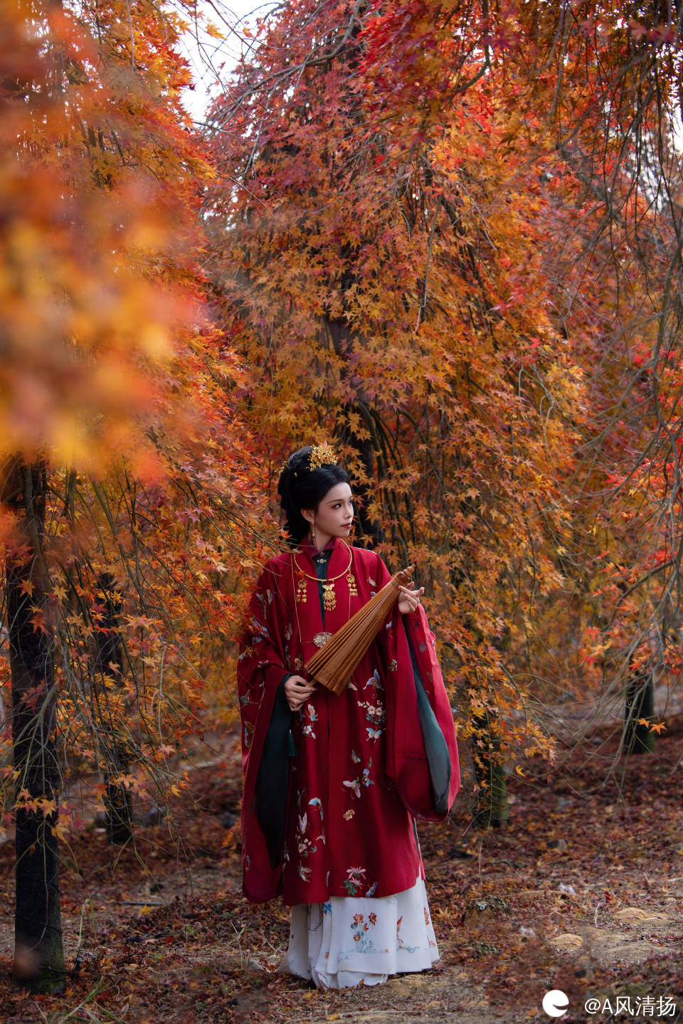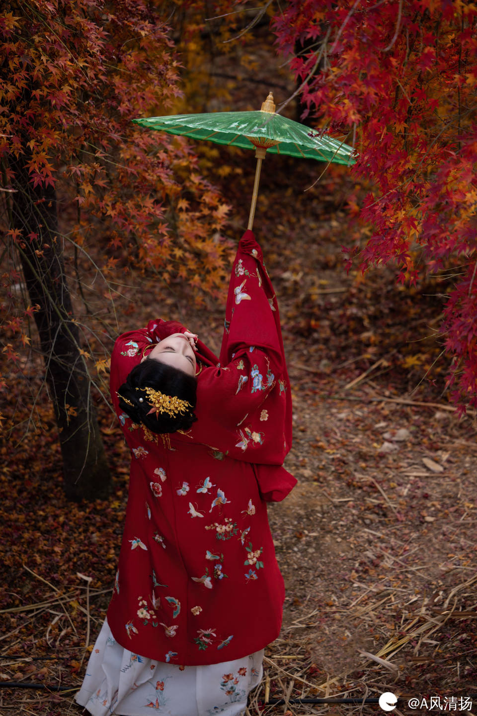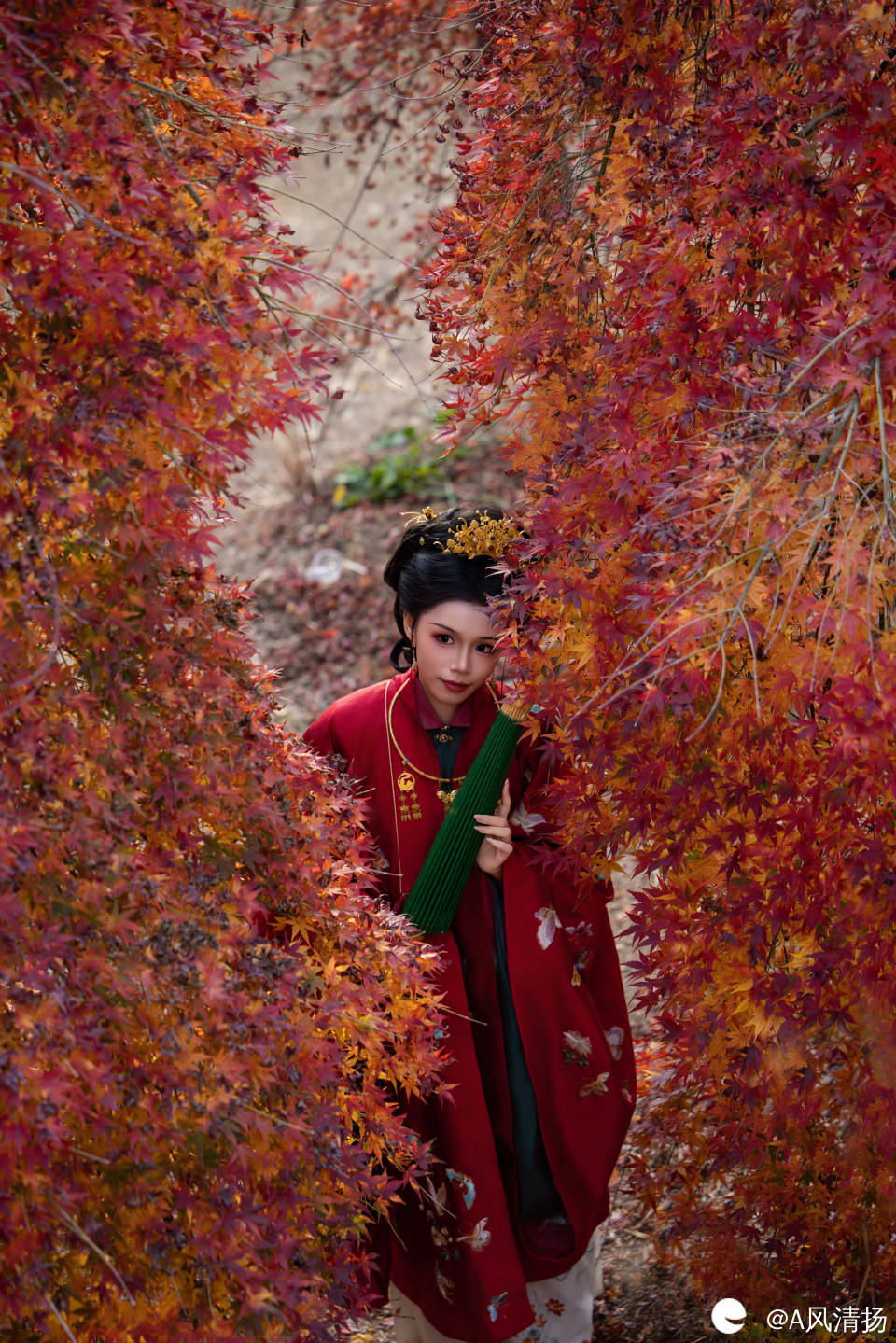 红枫似火照山中,寒冷秋风袭树丛,丹叶顺时别枝去,来年满岭又枫红……